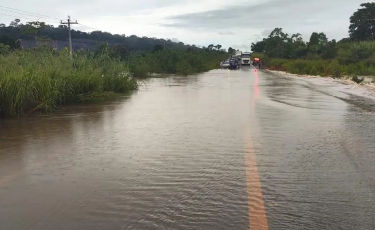 Pontos de alagamentos (BR 364): km 486 (Ariquemes/RO) Pare e siga. Apenas veículos de carga estão autorizados a passar.
