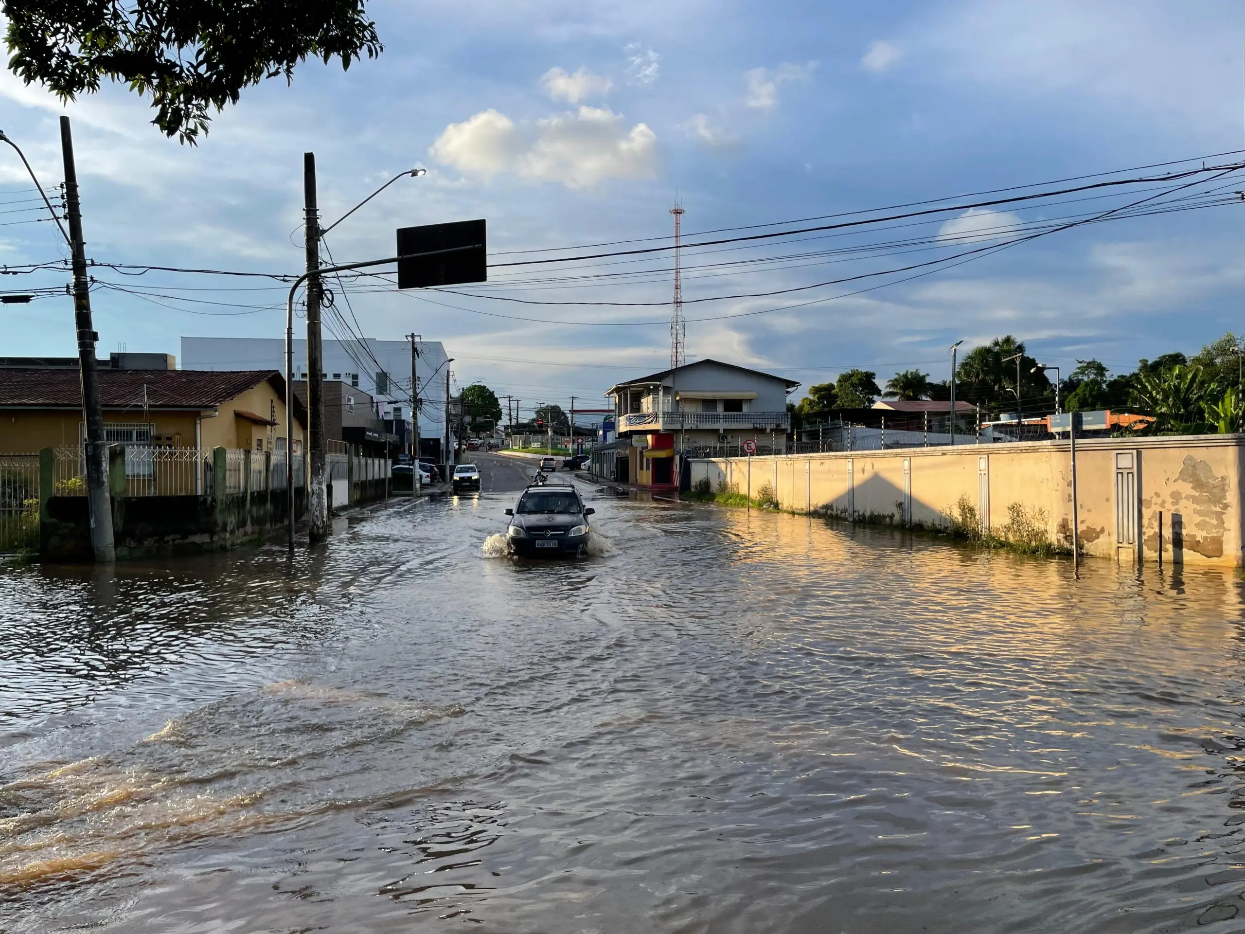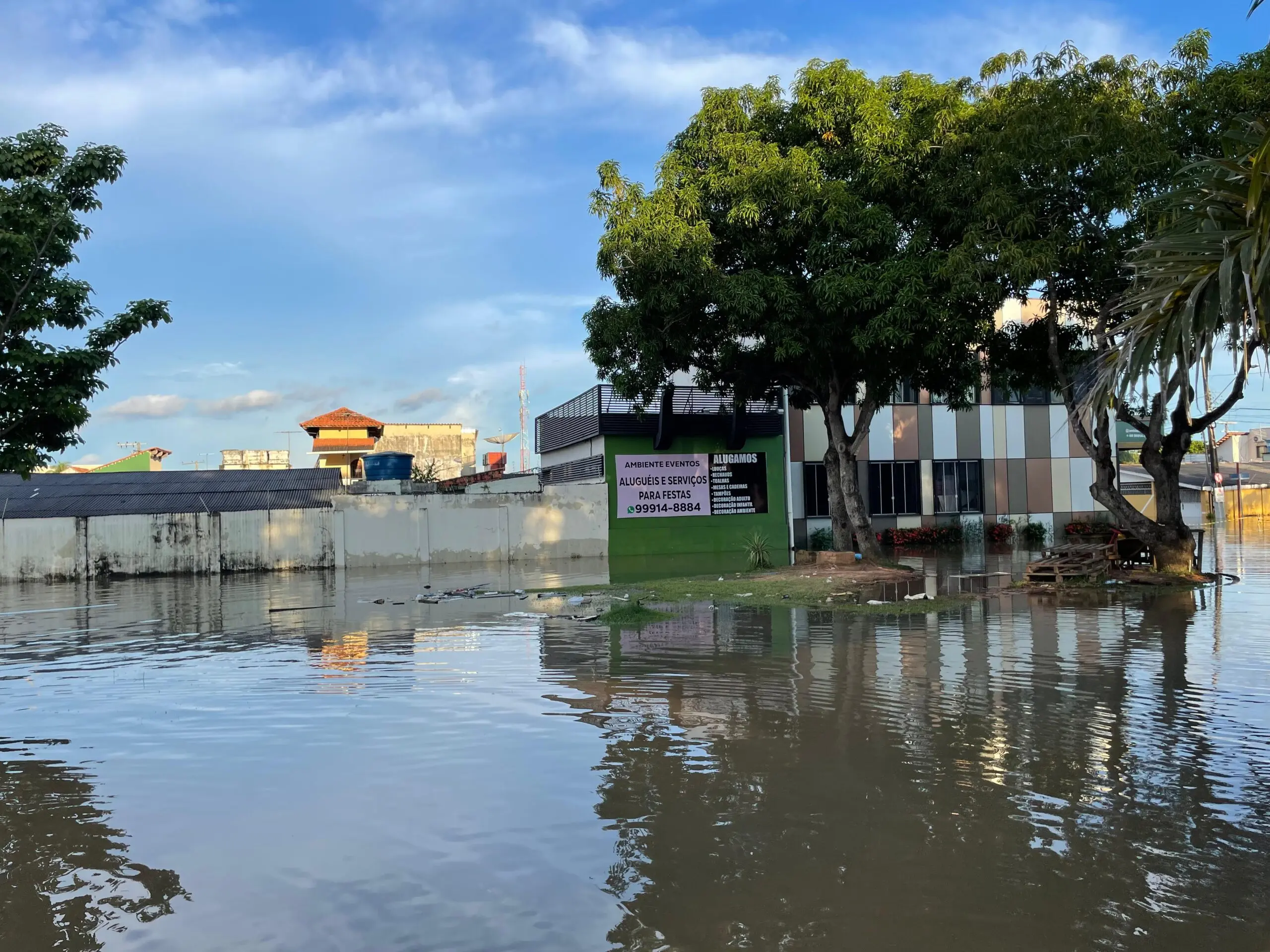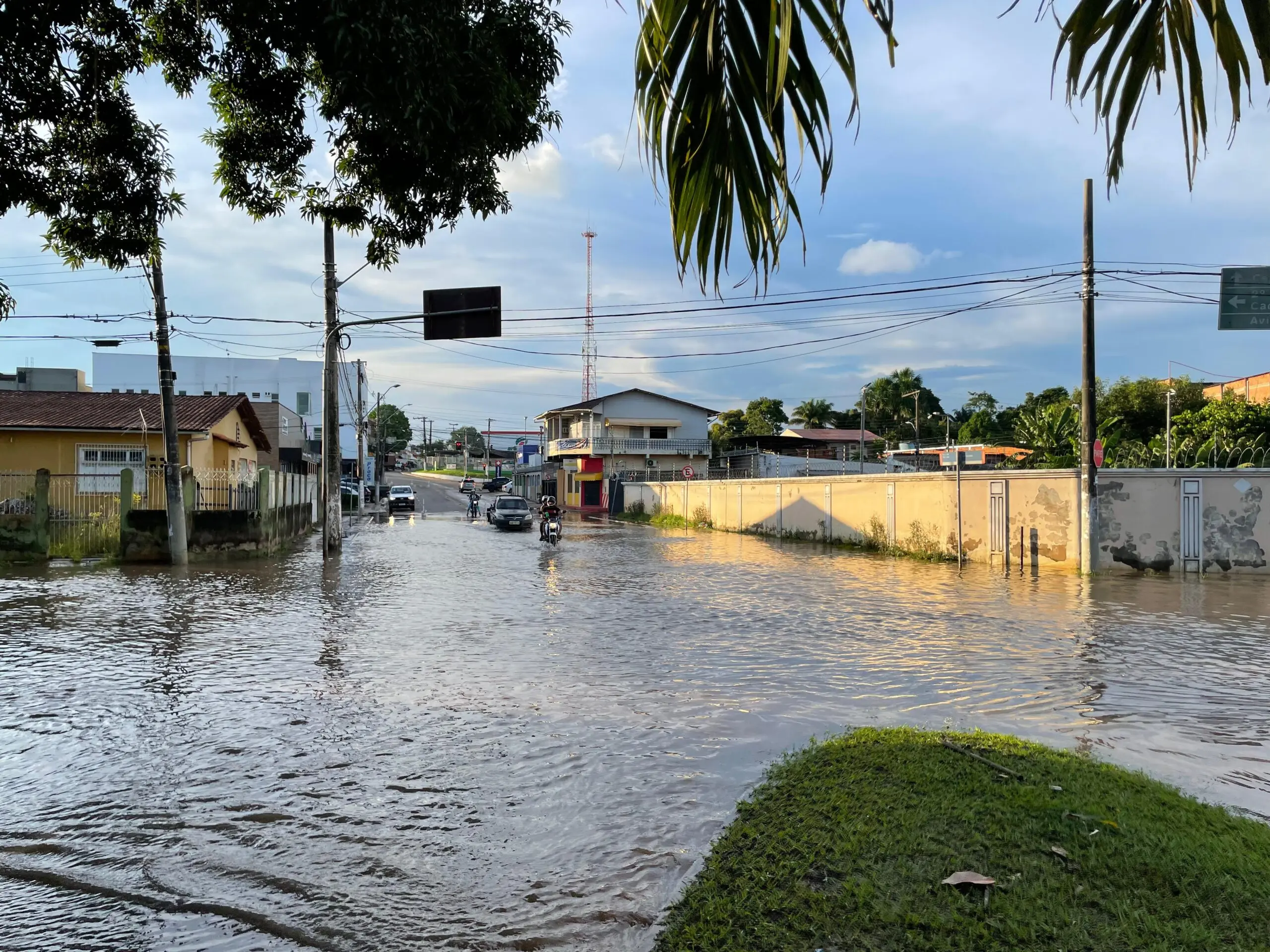 As ruas do bairro Habitasa, em Rio Branco, estão tomadas pelas águas da enchente que atingiu a capital acreana nos últimos dias. O bairro é considerado de classe média e um dos mais tradicionais de Rio Branco.