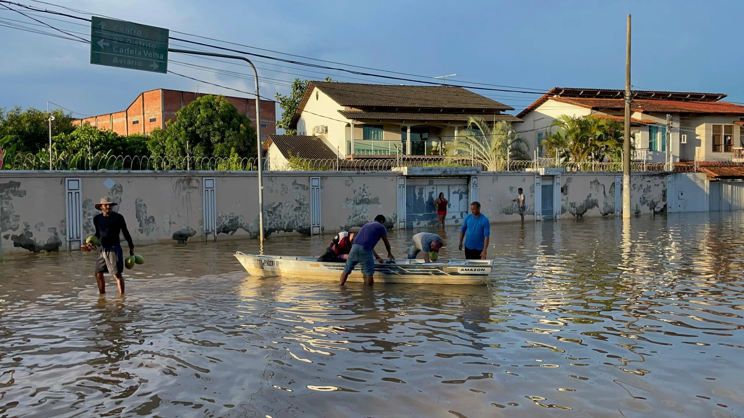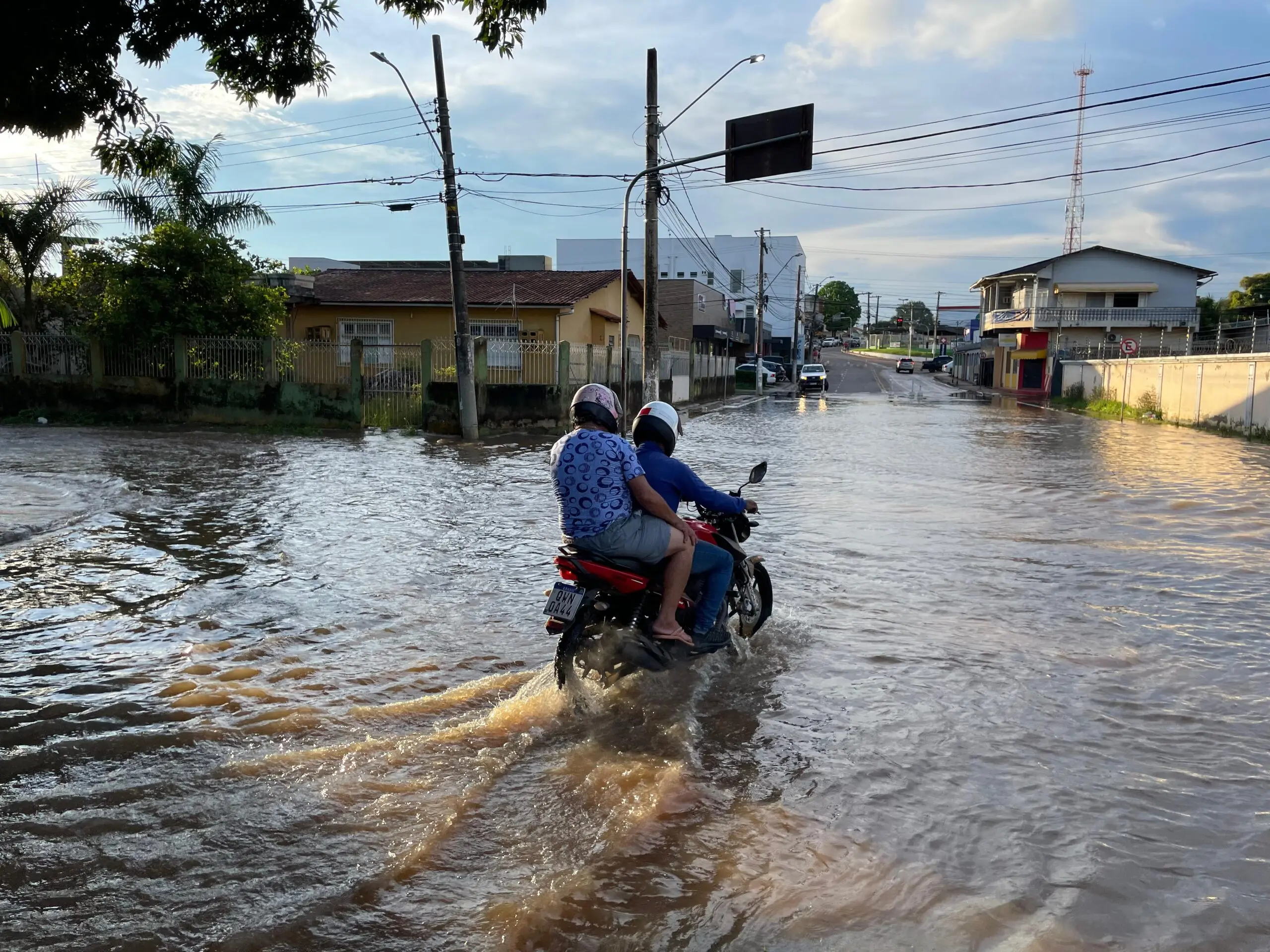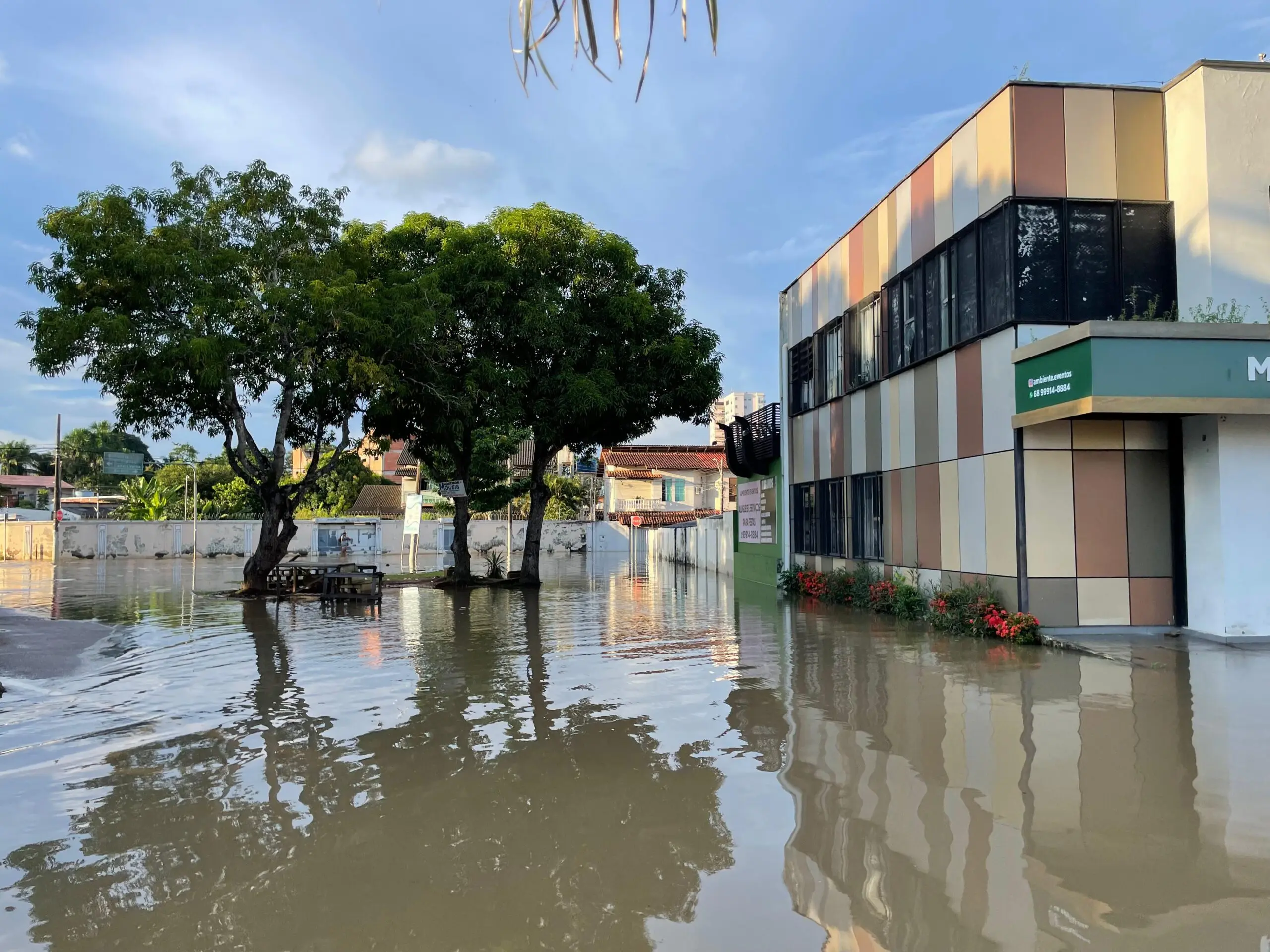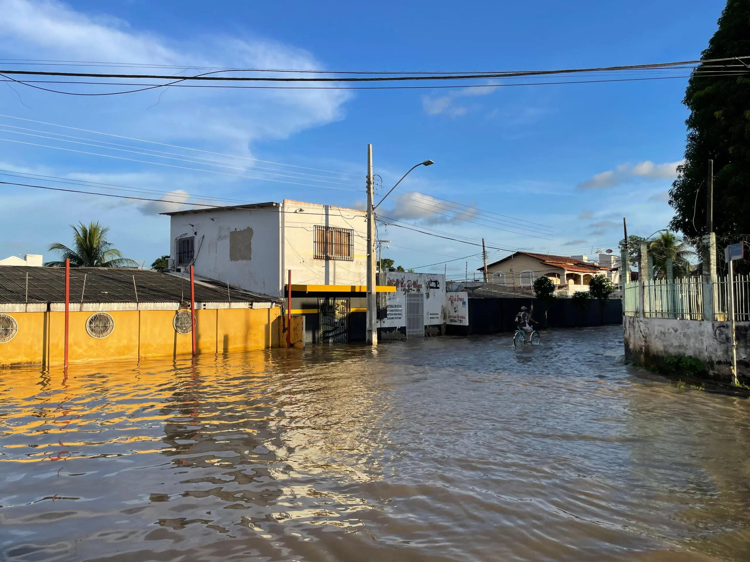 As ruas do bairro Habitasa, em Rio Branco, estão tomadas pelas águas da enchente que atingiu a capital acreana nos últimos dias. O bairro é considerado de classe média e um dos mais tradicionais de Rio Branco.