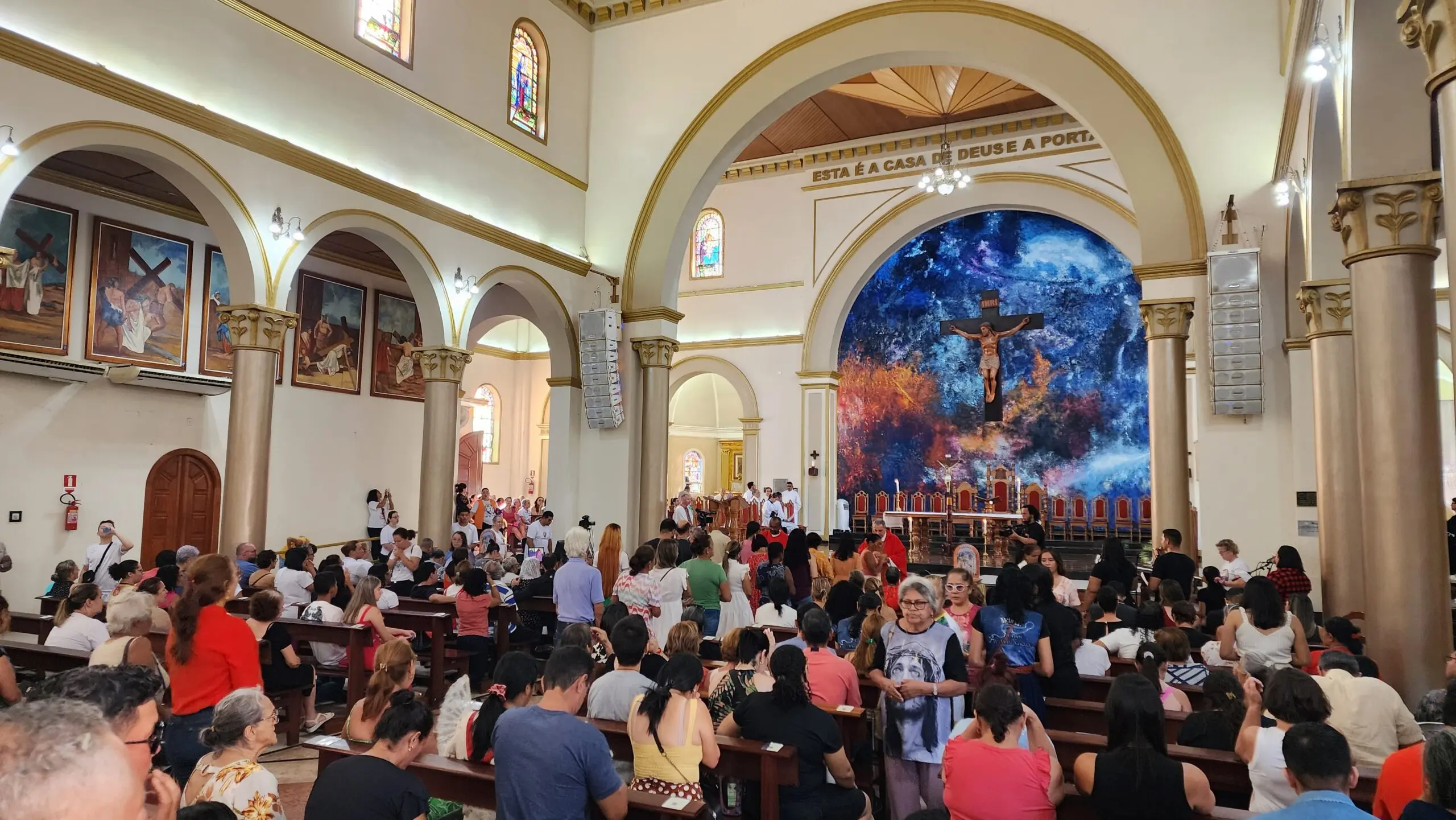 Os fiéis da igreja católica lotaram a Catedral Nossa Senhora de Nazaré para a Celebração da Paixão da Sexta-feira Santa, neste 29 de março.