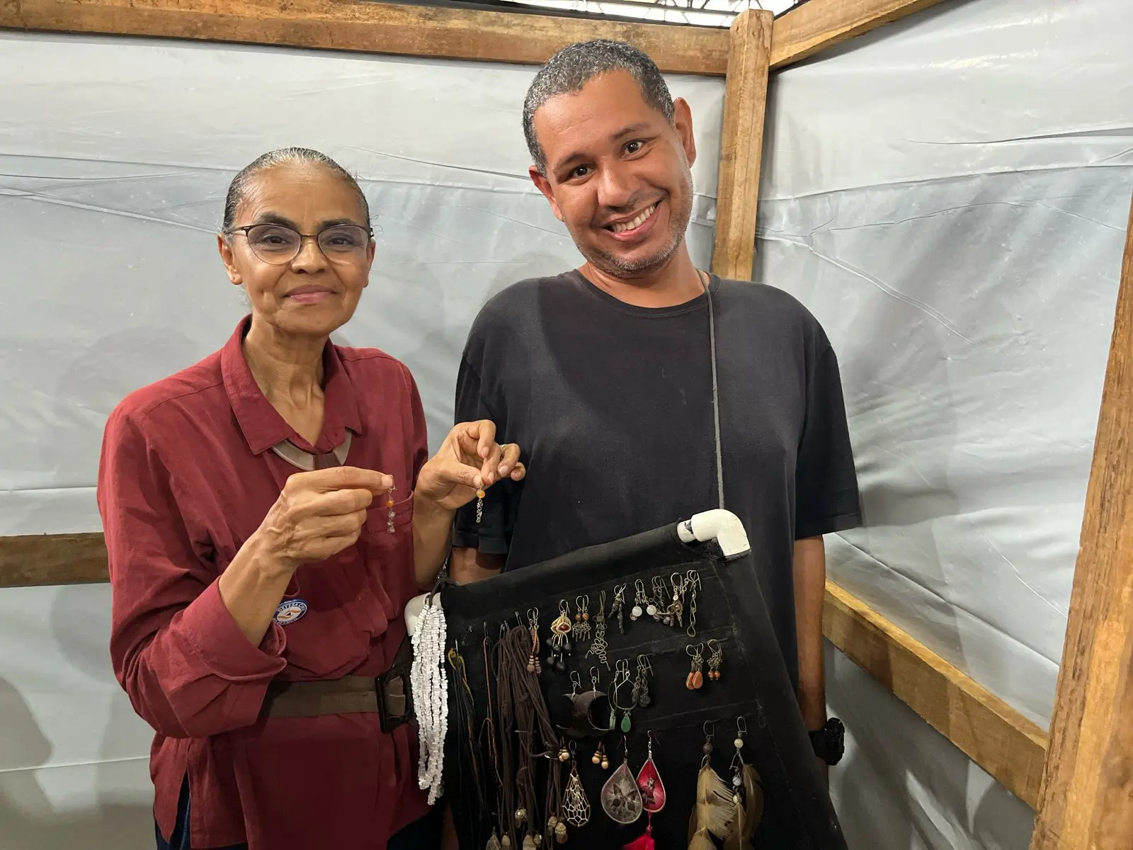 WinorLus, um jovem venezuelano morador do bairro Taquari, emocionou a ex-senadora e atual ministra do Meio Ambiente Marina Silva ao presenteá-la com um par de brincos feitos por suas próprias mãos.