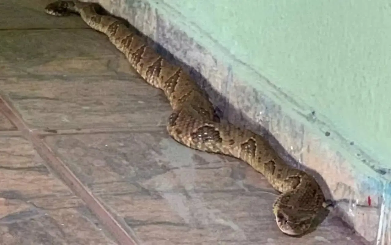 Uma cobra foi encontrada dentro do banheiro de um abrigo, em Águas Lindas de Goiás, no Entorno do Distrito Federal. O Corpo de Bombeiros foi acionado para fazer o resgate do animal, que, no momento da chegada da equipe, estava na varanda da instituição.