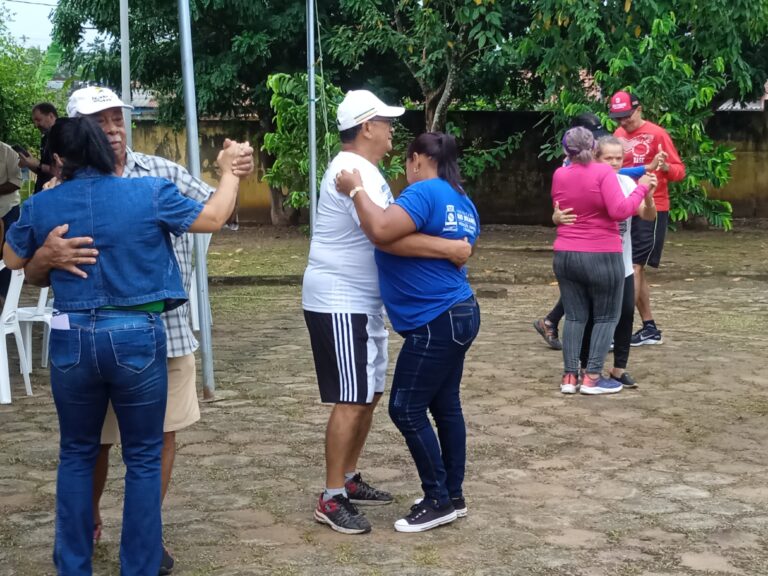Alguns se animaram e levantaram de suas cadeiras para dançaram em pares, enquanto aguardavam a chegada do prefeito, para dar o pontapé inicial à agenda.