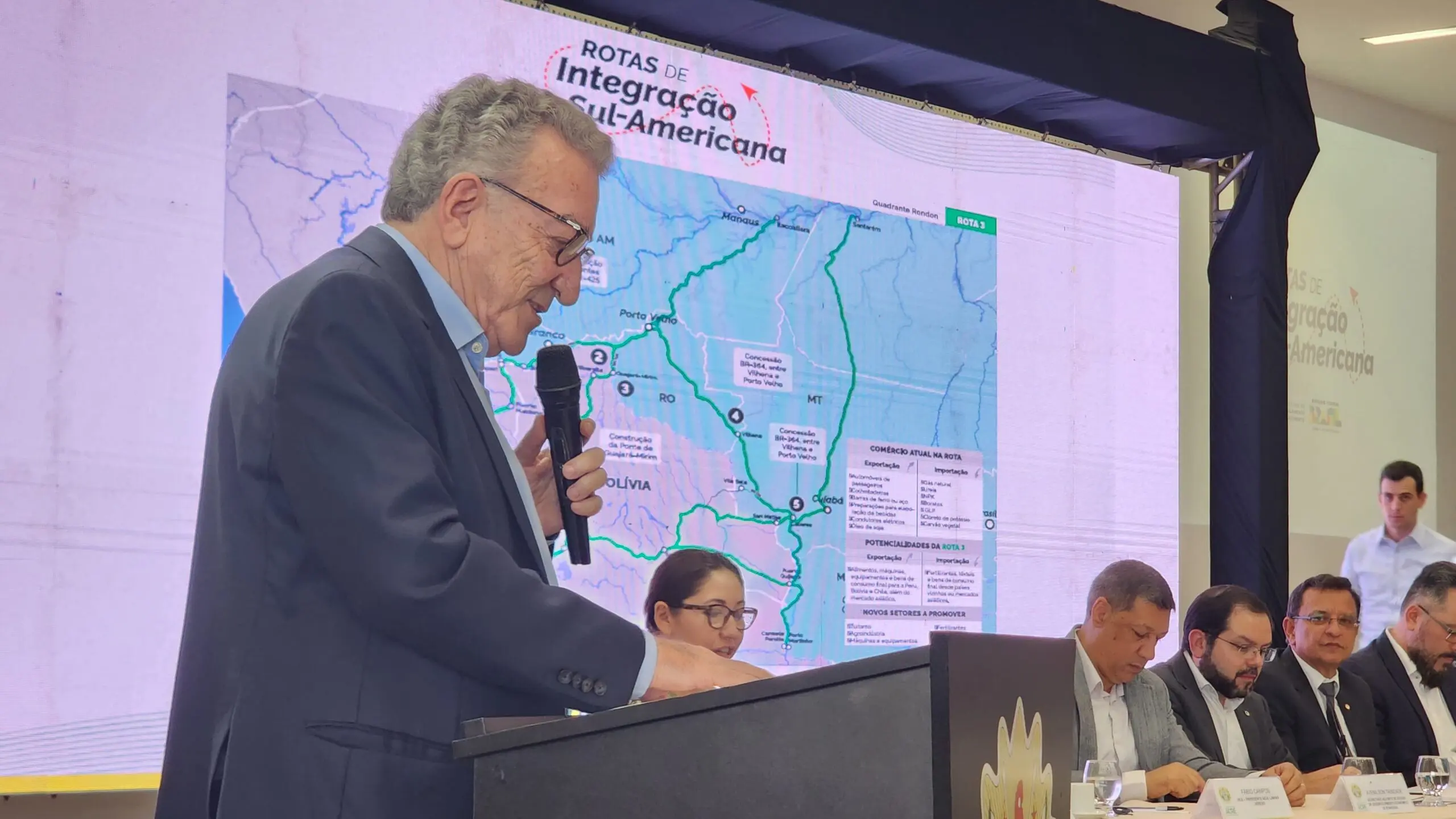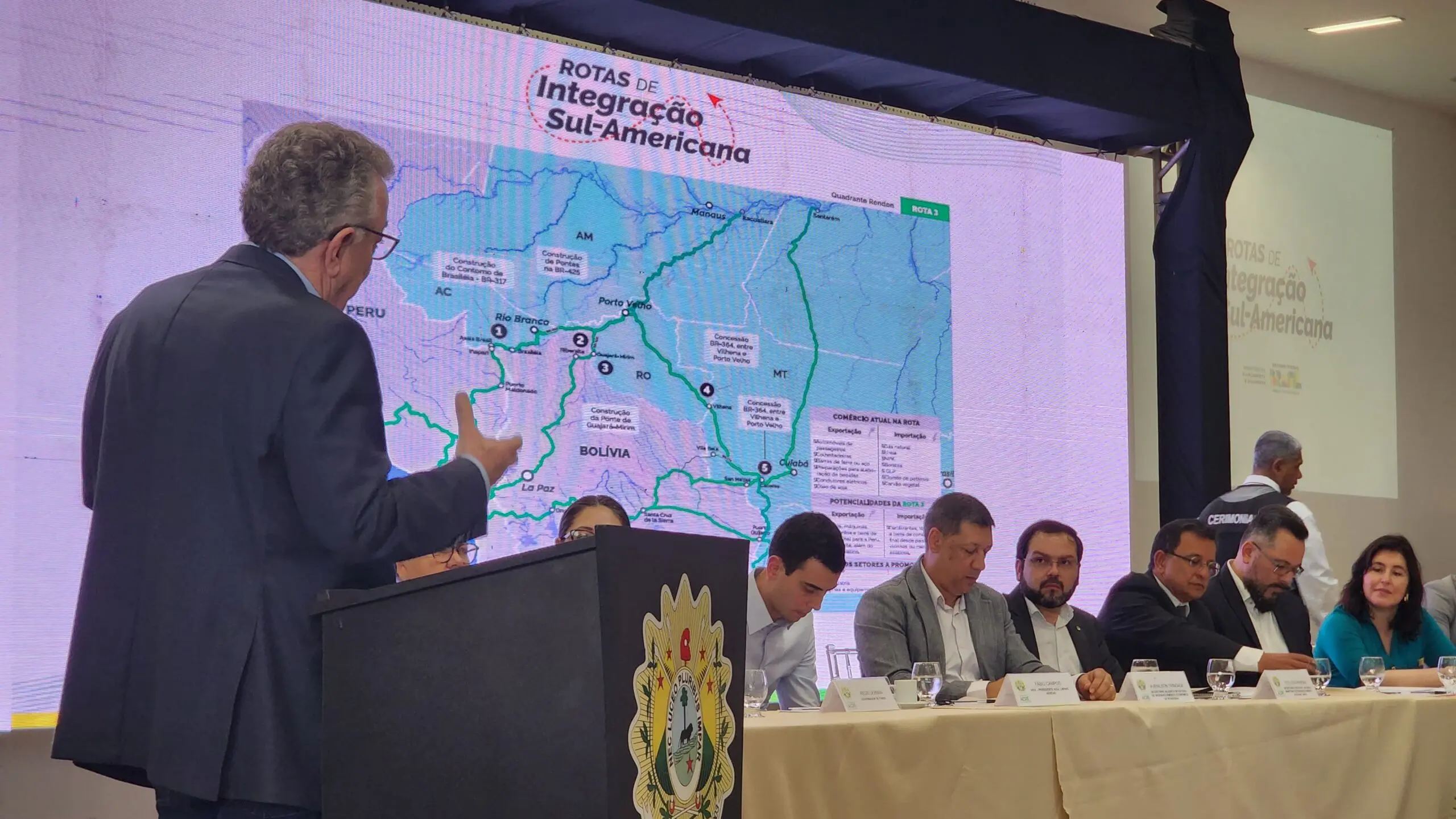 O presidente do Fórum Econômico de Desenvolvimento Regional, que reúne as federações da indústria e da agricultura, Assuero Veronez, defendeu a estrada de ligação do Acre com o Peru, através da Serra do Divisor, no Juruá. Veronez entregou à ministra Simone Tebet um documento defendendo a proposta, que enfrenta resistência do mundo ambiental internacional.