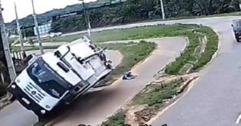 A cena chamou atenção de transeuntes do local, que se aproximaram para averiguar o que estava ocorrendo. O canteiro da rua onde o acidente ocorreu ficou visivelmente danificado pelo caminhão.