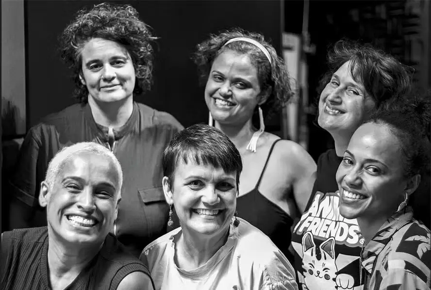 Erica Navarro, Naloana Lima e Florencia Saraiva, na fileira de cima; e Martinha Soares, Juliana Amaral e Naruna Costa: participantes do álbum “Cartas de marear” — Foto: Divulgação/Marcelo Dacosta