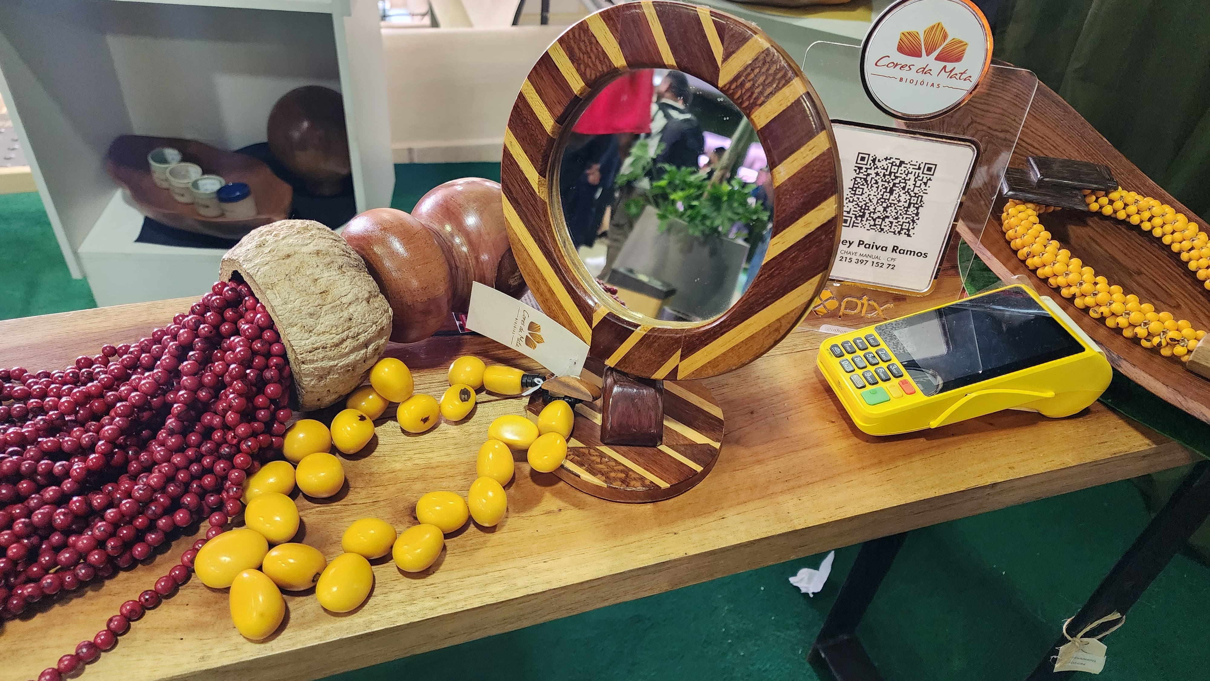 “Nós temos aqui produtos variados. Temos sementes, madeira, como temos produto de látex e a nossa famosa marchetaria do Acre. Também nós temos aqui um impacto positivo nas vendas. Aqui sempre vende bem”, declara a coordenadora.