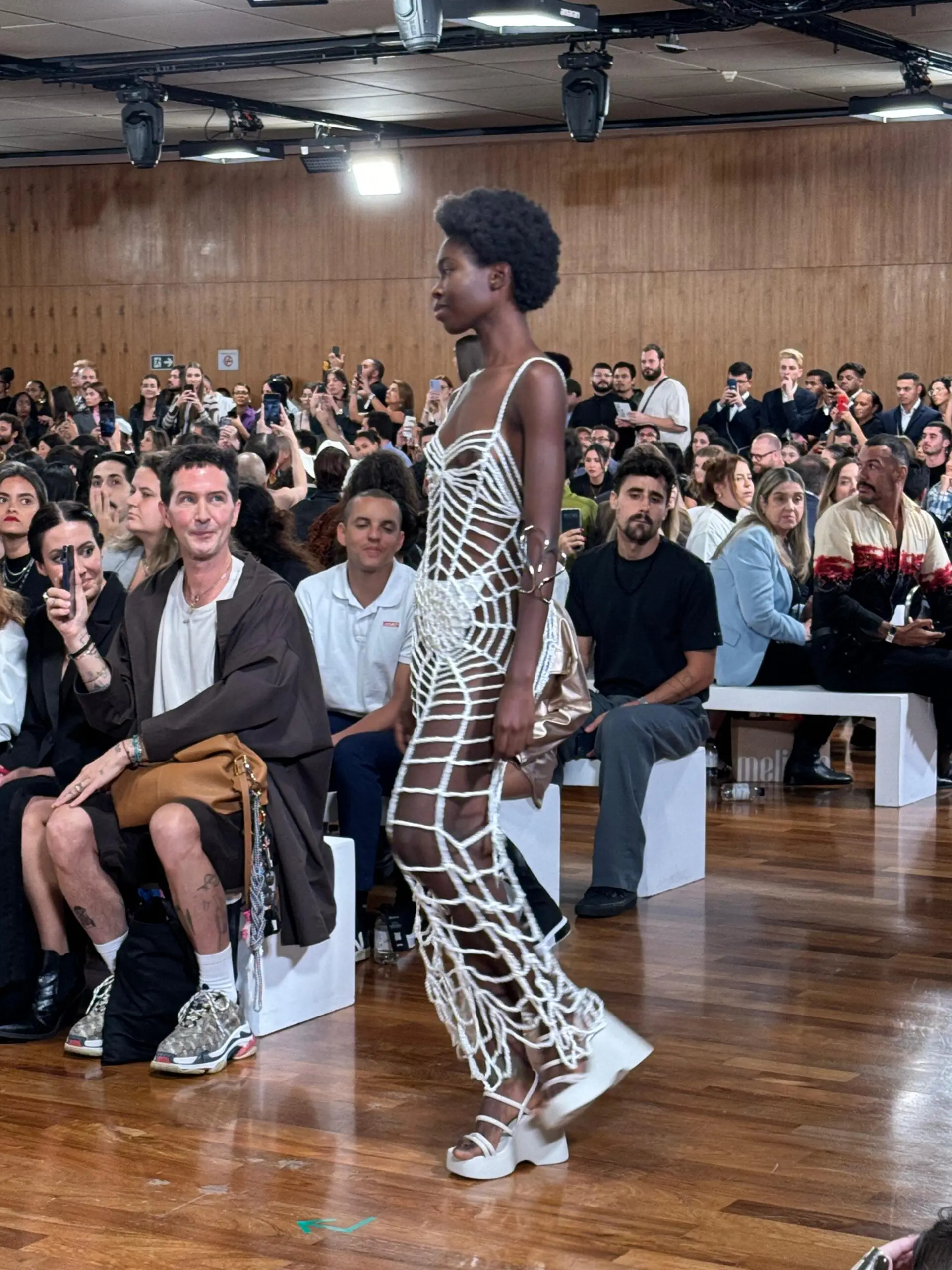 Sob os holofotes da passarela, os convidados foram transportados para um mundo de cores vibrantes e estampas exuberantes, transparência, brilho, com uma forte aposta em franjas e macramê.