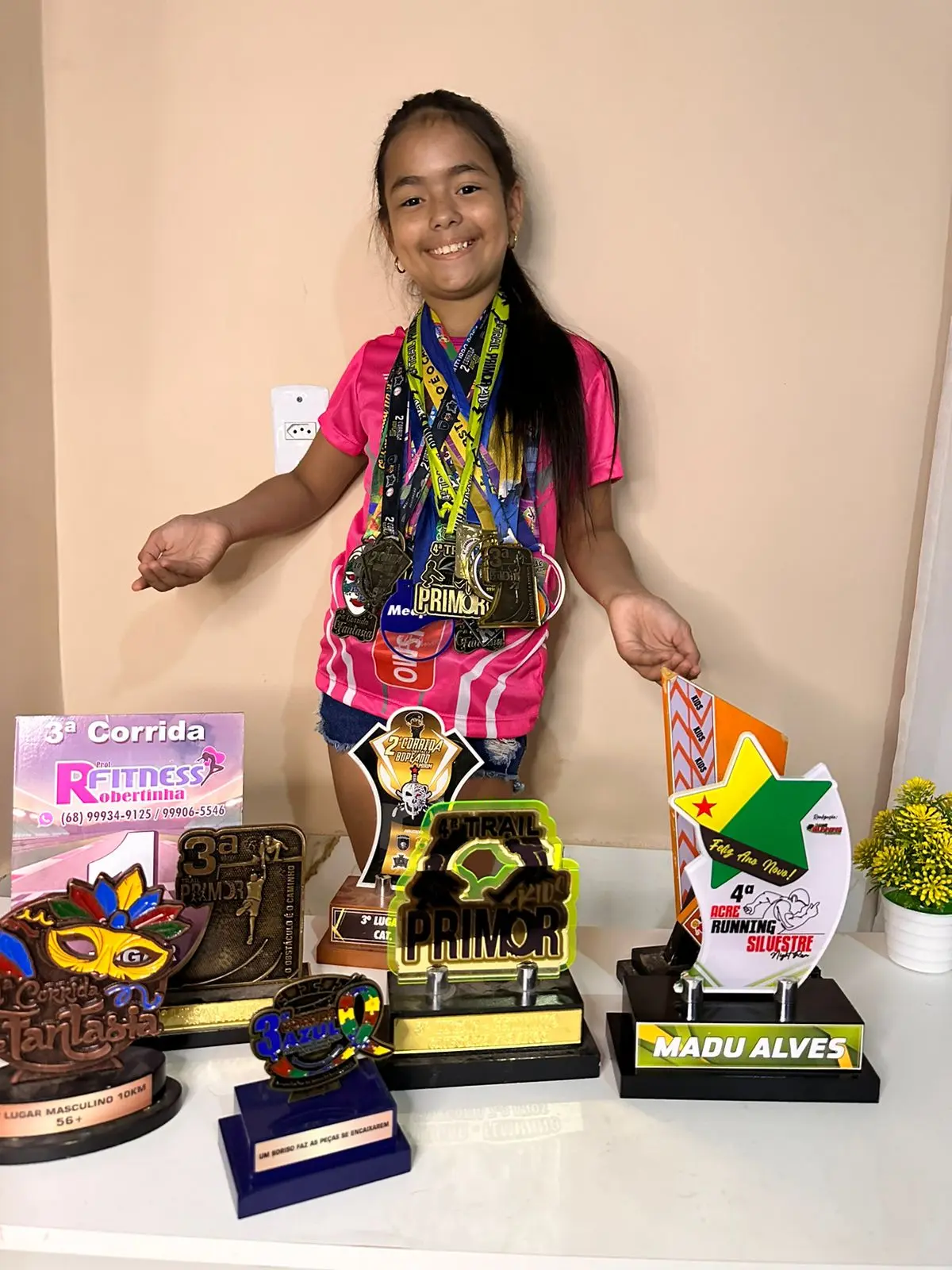 Conheça Madu, acreana de 8 anos com autismo que é Mini Miss, maratonista e atleta de trilha