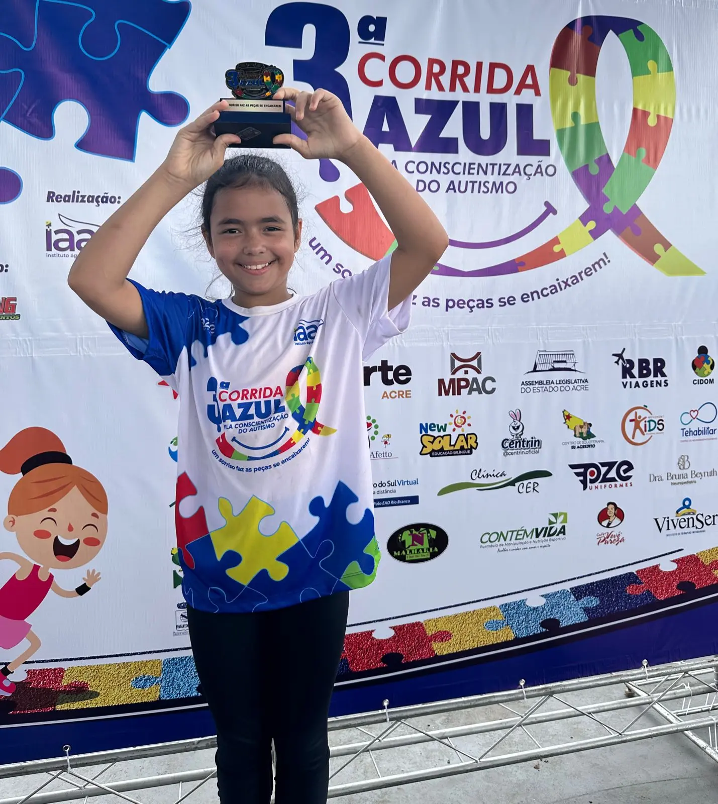 A acreaninha de 8 anos, diagnosticada com o espectro autista, coleciona uma série de conquistas. E, apesar da pouca idade, prefere mesmo é correr entre adultos. Foi assim, por exemplo na 3ª Corrida Azul de Conscientização do Autismo, em Rio Branco, no último domingo (7).