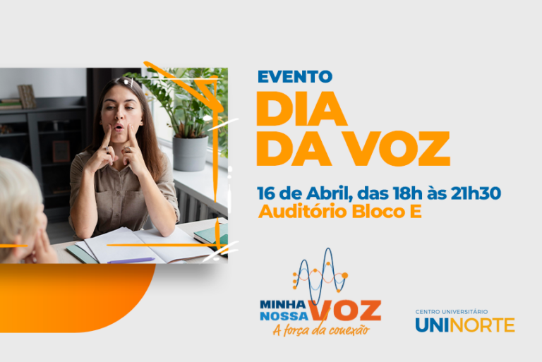Em celebração ao Dia da Voz, o curso de Fonoaudiologia do Centro Universitário Uninorte realizará em 16 de abril, às 18h, a mesa redonda Atualidades em Voz”, em referência a campanha nacional “Minha Voz, Nossa Voz. A Força da Conexão”.