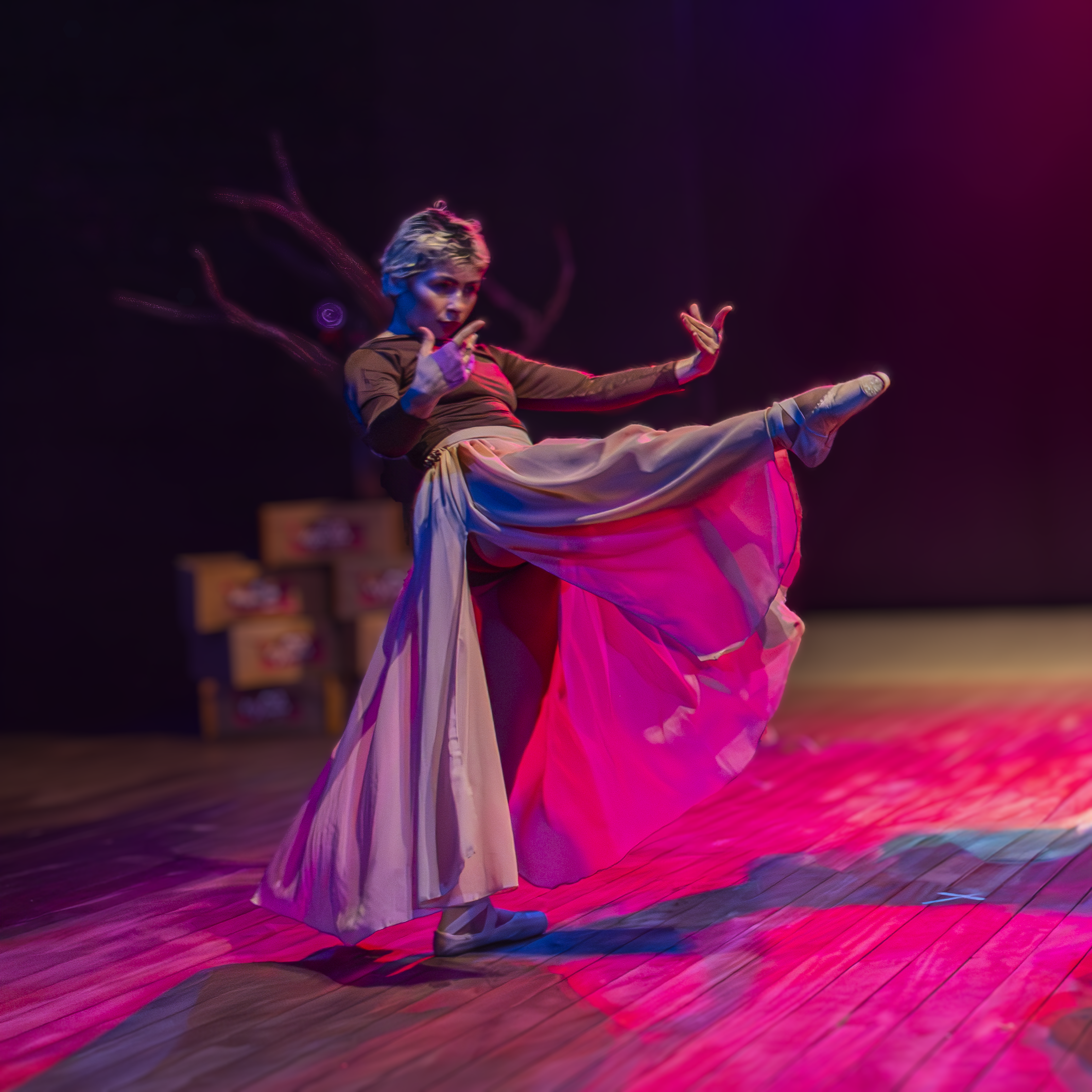 “Eu acredito que aos 12 anos comecei a dançar na igreja e, já adulta, aos 19 quase 20 anos, iniciei no ballet. Passei por uma seleção para obter uma bolsa em uma escola e fui aprovada como aluna”, comenta Maciel sobre como o ballet entrou em sua vida.