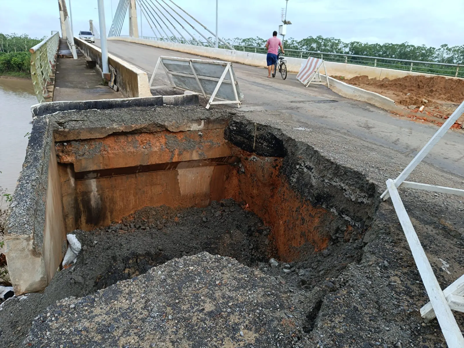 A erosão na cabeceira da ponte do Rio Tarauacá/Foto: Reprodução