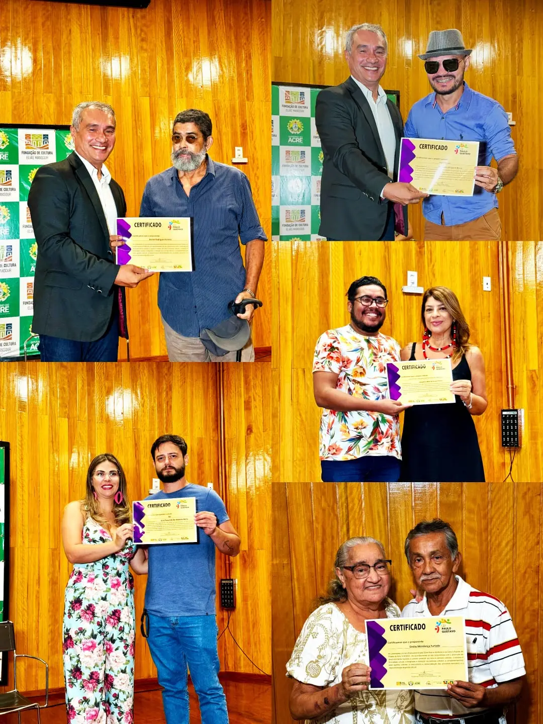 Em reconhecimento ao trabalho dos fazedores de cultura, o governo do Acre, por meio da Fundação de Cultura Elias Mansour (FEM), fez a entrega dos certificados dos contemplados nos editais de Audiovisual, Mestres da Cultura e Arte e Patrimônio da Lei Paulo Gustavo (LPG), no auditório do Museu dos Povos Acreanos.