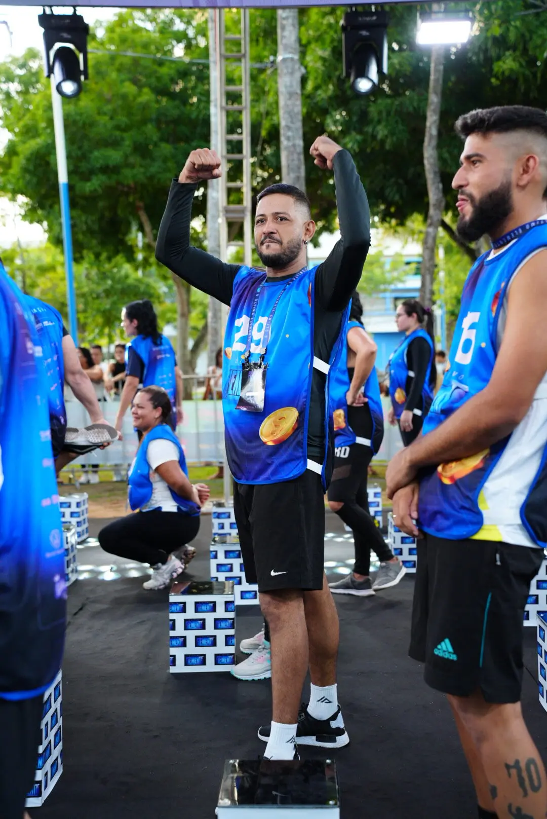 Trinta competidores estão participando de uma dinâmica repleta de provas de resistência