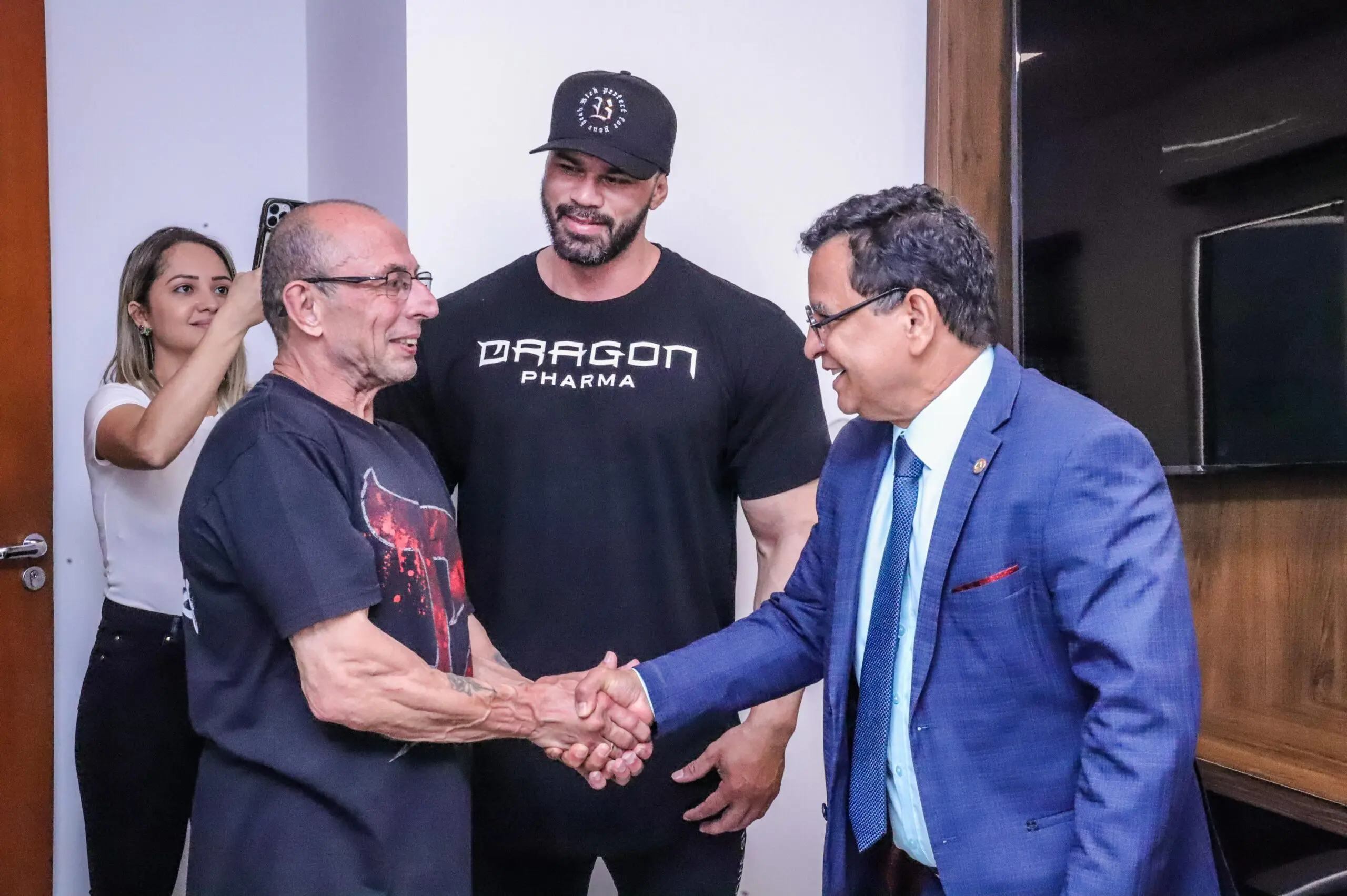 O presidente e o primeiro-secretário da Assembleia Legislativa do Acre (Aleac), deputados Luiz Gonzaga e Nicolau Junior, receberam nesta quarta-feira (17) a visita do fisiculturista Everson Costa que irá representar o Acre no campeonato de fisiculturismo Mr. Olympia, que vai ocorrer em Las Vegas, nos Estados Unidos.