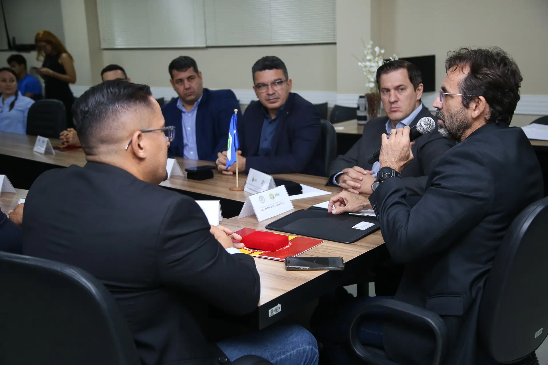 “O evento de hoje é uma consequência de um evento que tivemos em Cobija, que foi um encontro trinacional para tratar das questões transfronteiriças, não só crimes, mas todas as demandas da área de fronteira. E como continuidade dessa agenda, nós nos reunimos com os secretários de Rondônia e o secretário de Mato Grosso para assinarmos um acordo de cooperação técnica, onde nós vamos otimizar nossas plataformas tecnológicas para que possamos desenvolver melhor a ferramenta de inteligência. Estamos estendendo para eles, com esse acordo de cooperação técnica, acesso às nossas bases de dados, nossas bases de informação, para que possamos melhorar nossa prestação de serviço. Então, esse momento foi um momento de finalizar essa agenda com a assinatura desses termos e também homenagear os secretários que aqui estiveram com as medalhas da Secretaria de Segurança Pública pelos bons serviços prestados aos estados, tanto ao estado do Acre como aos seus estados, para a sociedade brasileira”, afirmou Gaia.