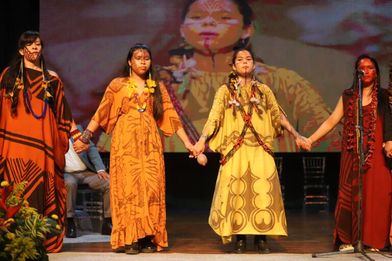 Os indígenas do grupo Saiti Munuti – Cantos e Encantos Yawanawá na abertura do evento/Foto: Juan Diaz/ContilNet
