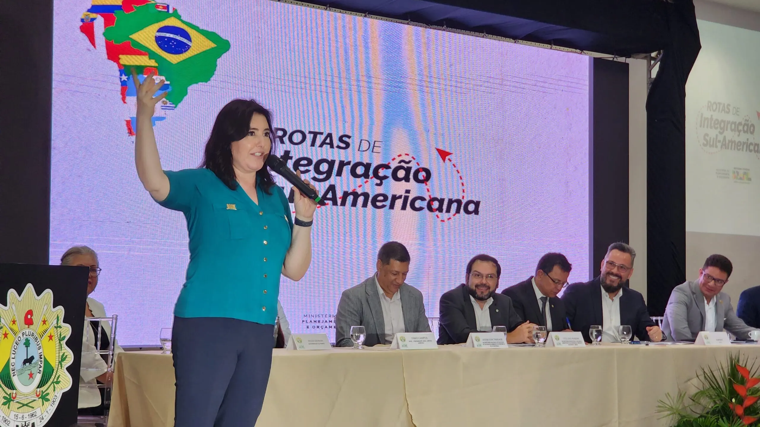 A ministra Simone Tebet participa na manhã desta terça-feira (9) do evento “Rotas de Integração Sul-Americana”, que acontece na capital acreana. Na ocasião ela garantiu que a licitação para as obras da BR-364 inicia ainda em maio deste ano.