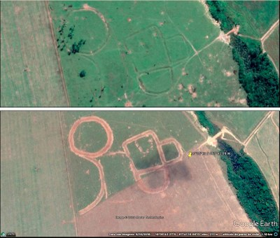 As imagens mostram as modificações no geoglifo/ Foto: Reprodução