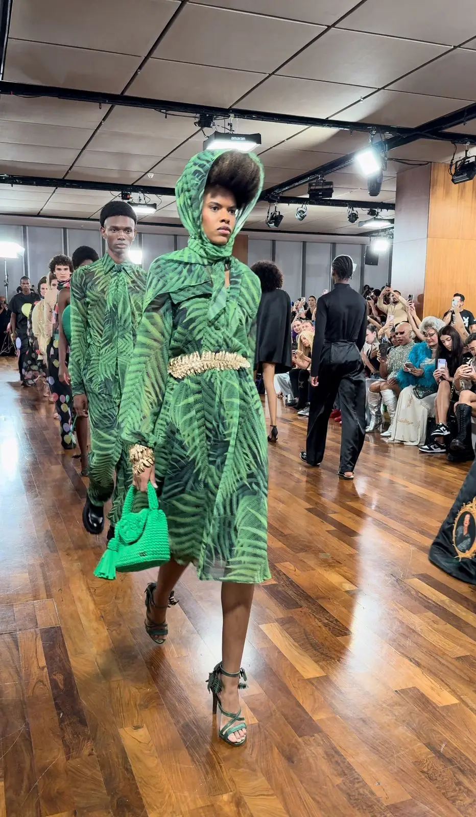 As estampas de samambaias, as ilustrações dos porquinhos e os tons suaves de rosa que dominavam a coleção eram uma reverência à atmosfera acolhedora e familiar que inspira o trabalho de Walério Araújo. Seu desfile não apenas celebrou a moda, mas também a história e os afetos que moldaram sua jornada como designer.
