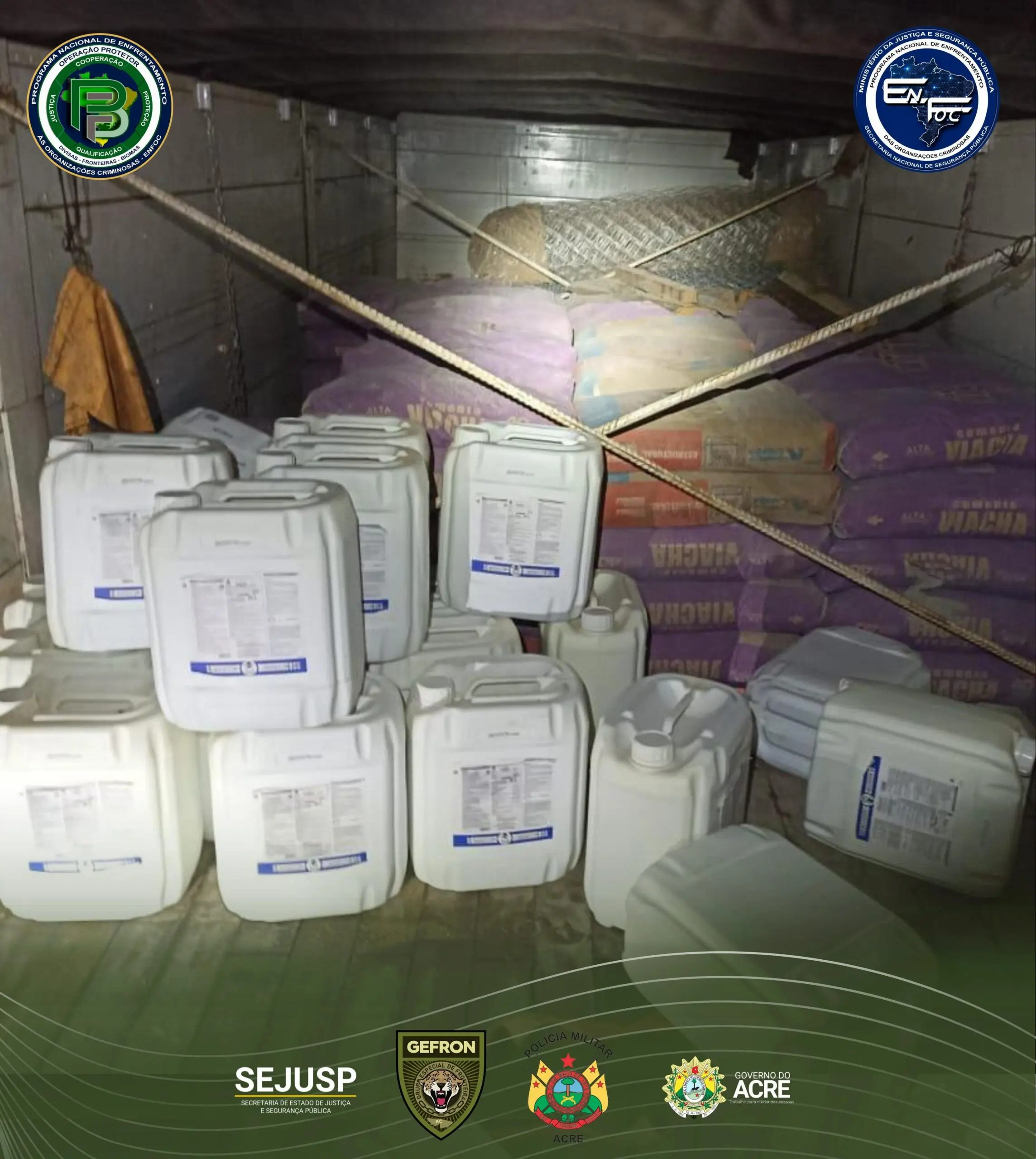 Uma operação realizada na última quarta-feira (24) pelo Grupo Especial de Fronteiras (Gefron), em parceria com a Polícia Militar do Acre (PMAC), culminou na apreensão de 400 litros de agrotóxicos e outros itens que teria saído de Brasiléia com destino a Rio Branco. O prejuízo total foi estimado em R$ 571.750 mil ao crime.
