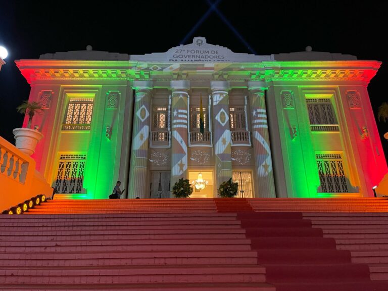Palácio Rio Branco recebe iluminação com bandeiras dos 9 estados da Amazônia Legal