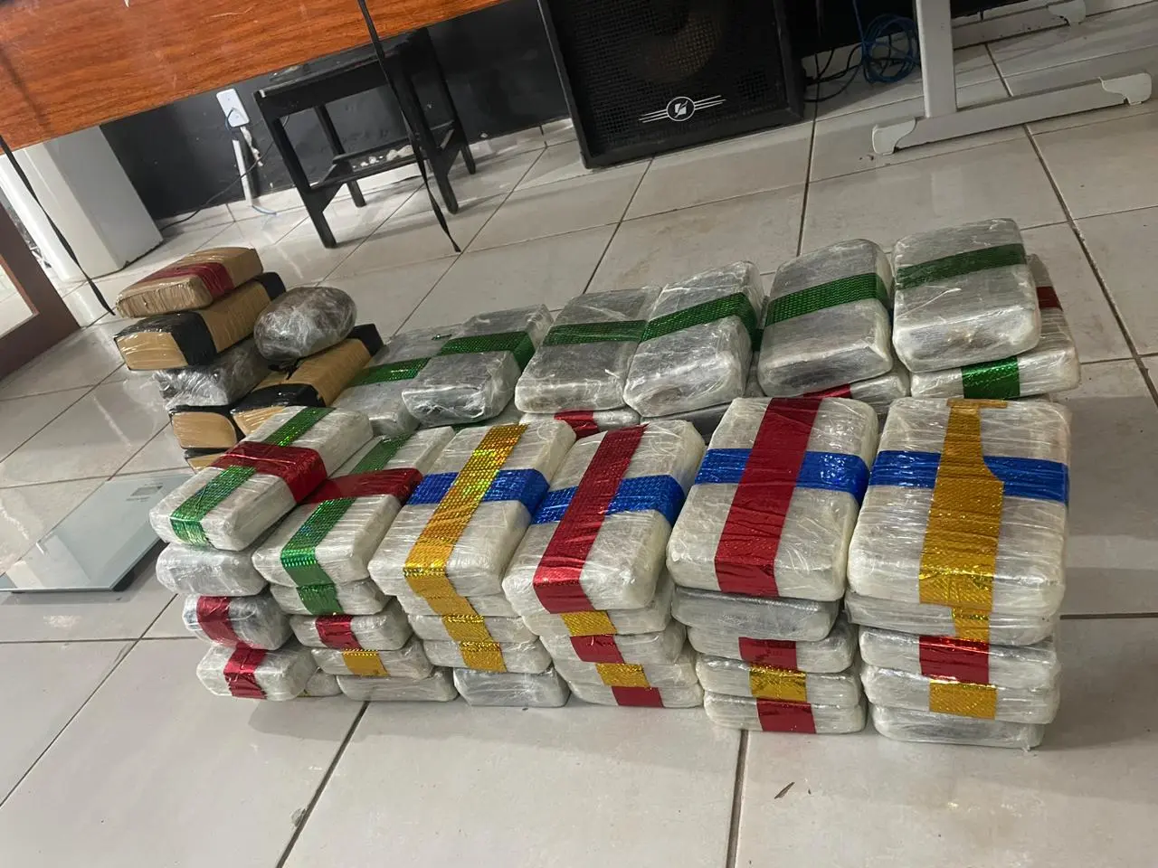 Os policiais verificaram a sacola deixada e em seu interior existiam embalagens de substância aparentando ser maconha, pela janela do imóvel os militares avistaram que existiam muitas embalagens iguais e não existia ninguém no local. A equipe policial adentrou e encontrou mais de 70 “tijolos” de maconha pesando 79,5 quilos da substância.