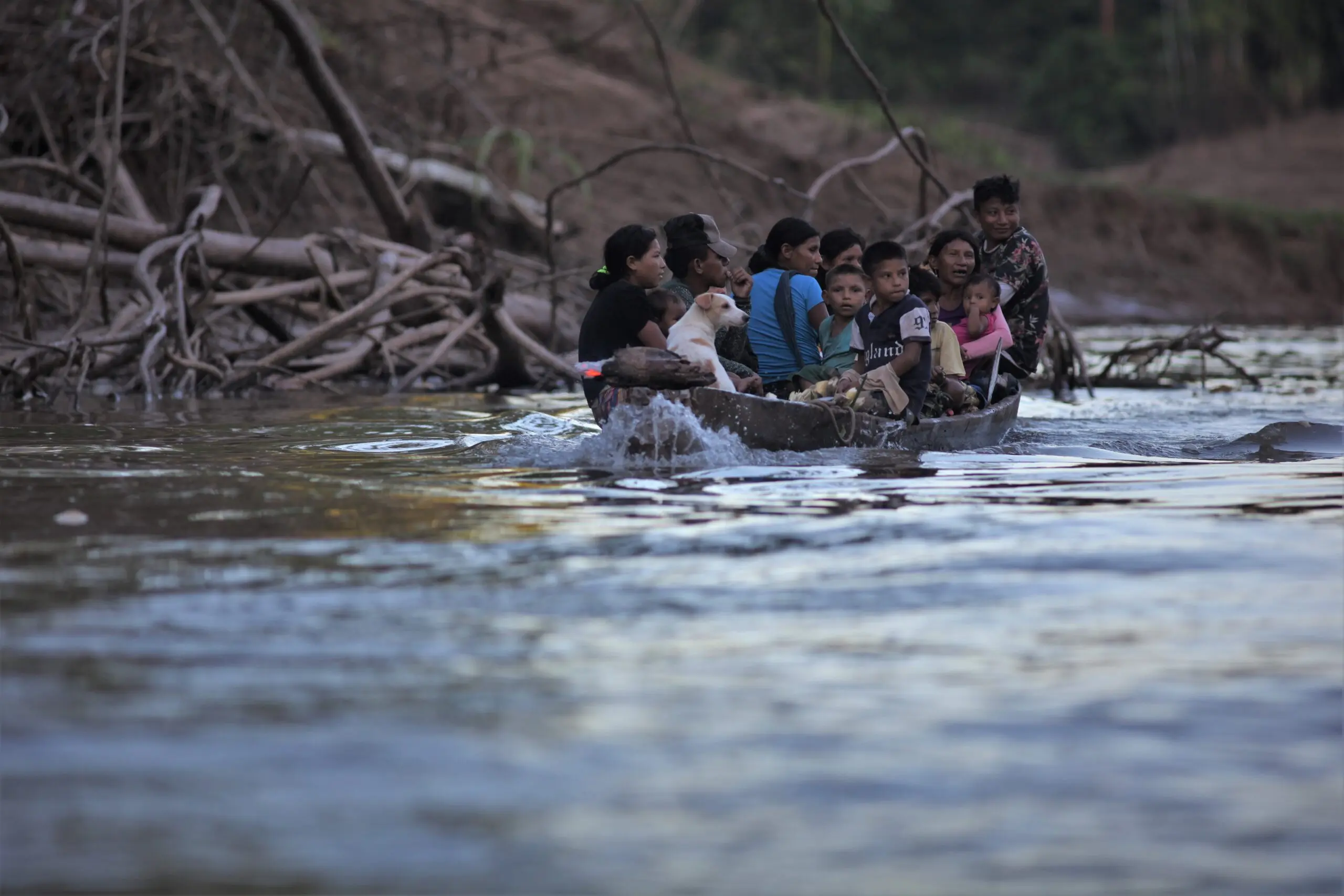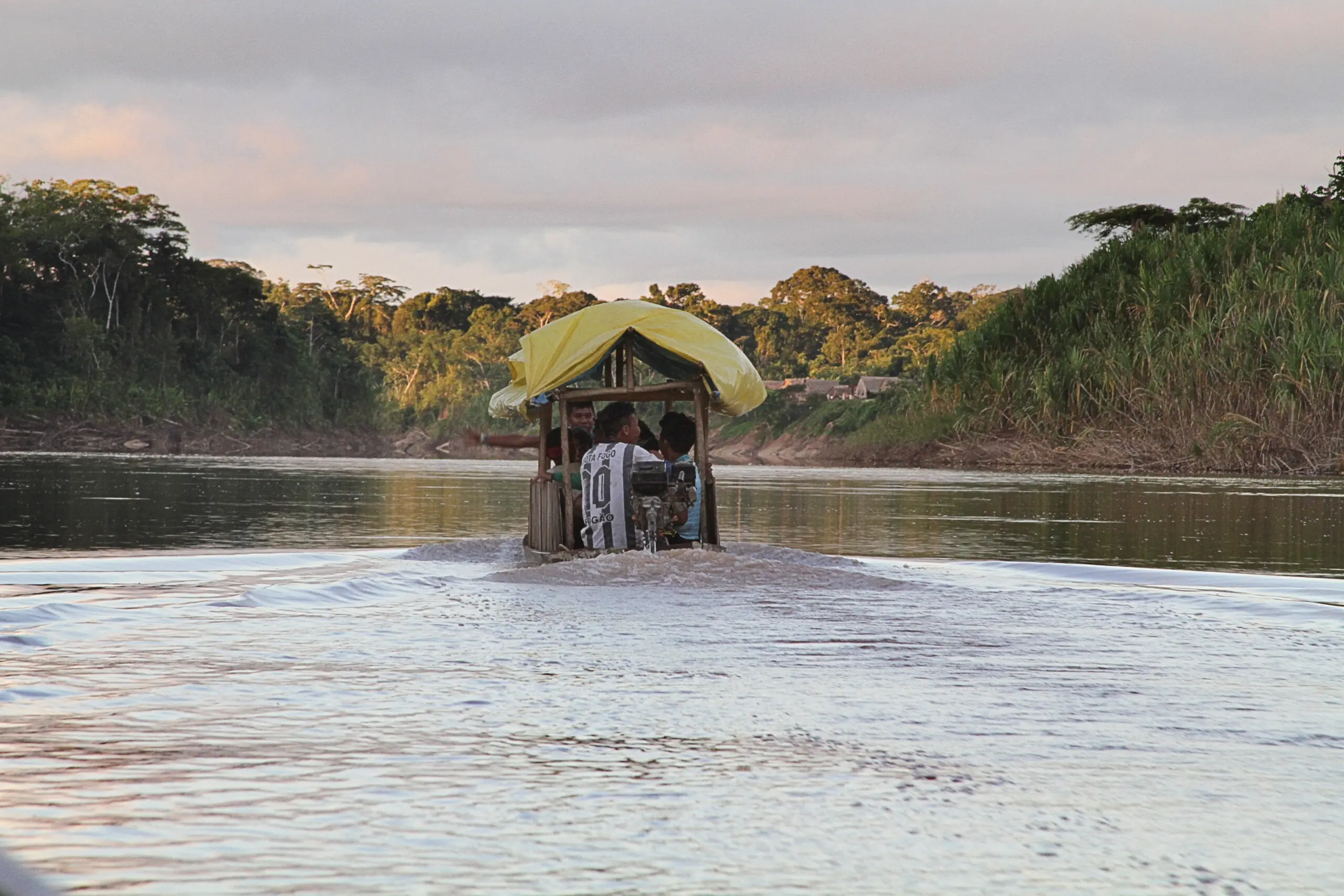 Pequena embarcação singra o Rio Purus com indígenas de aldeia kaxinawá/Foto: Odair Leal
