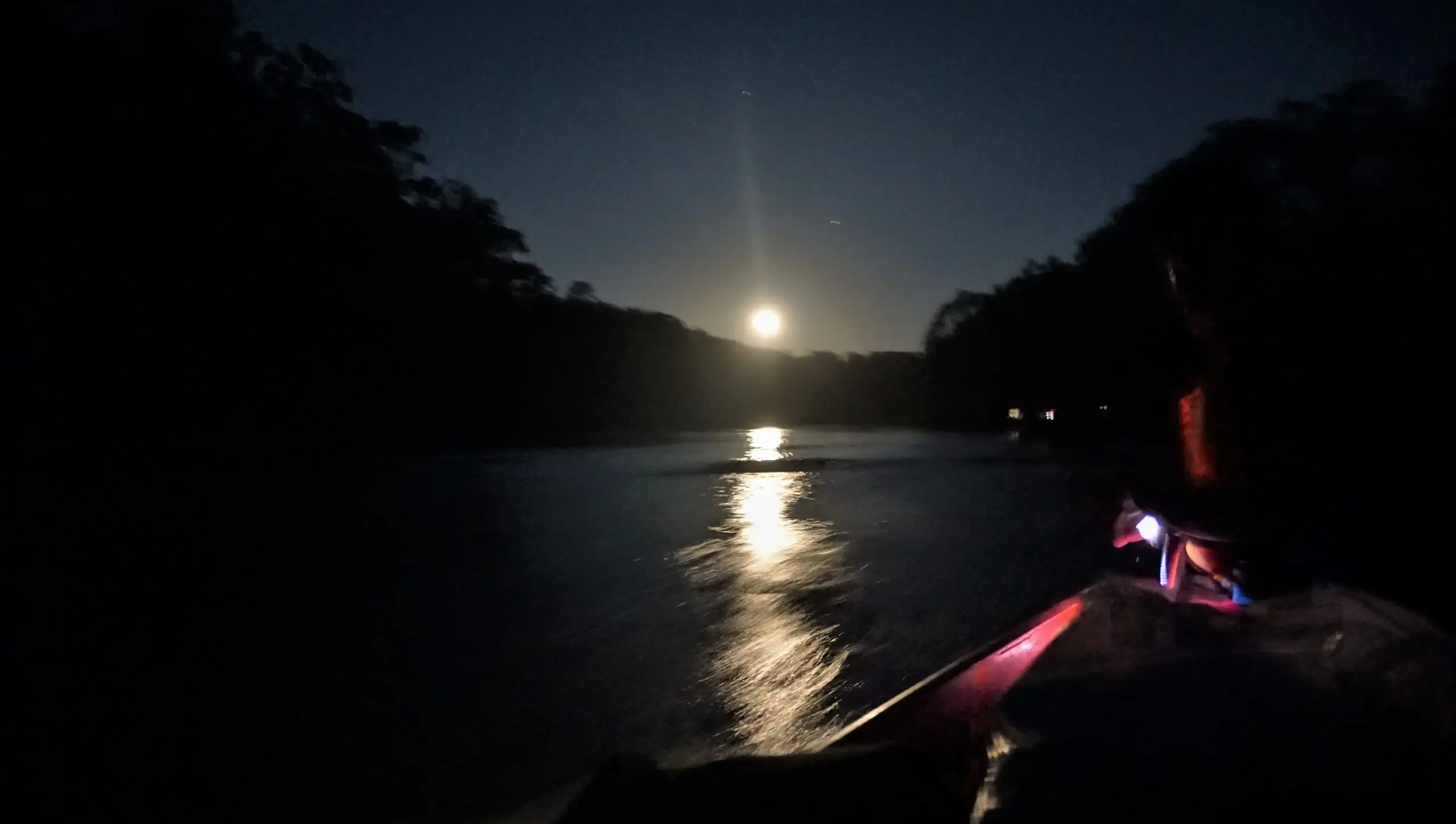Noite de lua cheia em um trecho do Rio Purus, enquanto o barco navega em direção a aldeia kaxinawá. Região é lar de inúmeros indígenas no Acre/Foto: Odair Leal