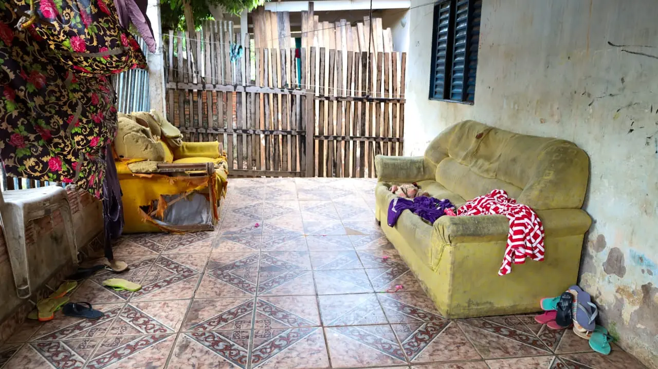 A casa é alugada por R$ 600 com a tarifa de energia incluída no valor do aluguel. Esse dinheiro vem de dois auxílios do governo federal concedidos para duas crianças pequenas. O quintal atrás da casa é completamente insalubre, com esgoto e matagal tomando de conta. O banheiro, ligado à varanda, não tem porta nem água encanada. Existem ainda somente duas paredes de madeira, que impedem a privacidade total de quem usará o vaso sanitário.