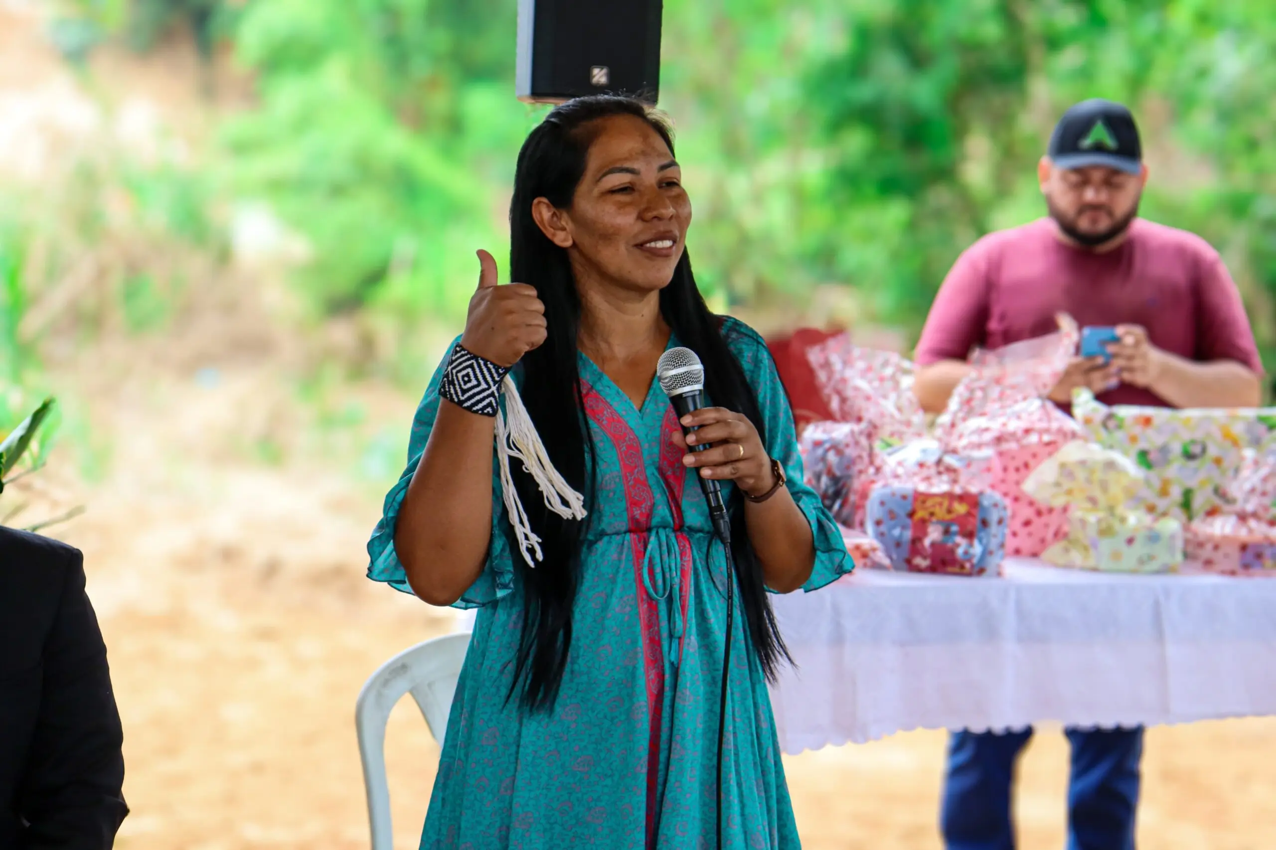 Marilza Jaminawa representante da comunidade fala da homenagem especial recebida.”É muito importante e especial quando a gente ver que somos vistos e valorizados, estamos sendo homenageados e que poder público estar aqui conosco para nos apoiar”.