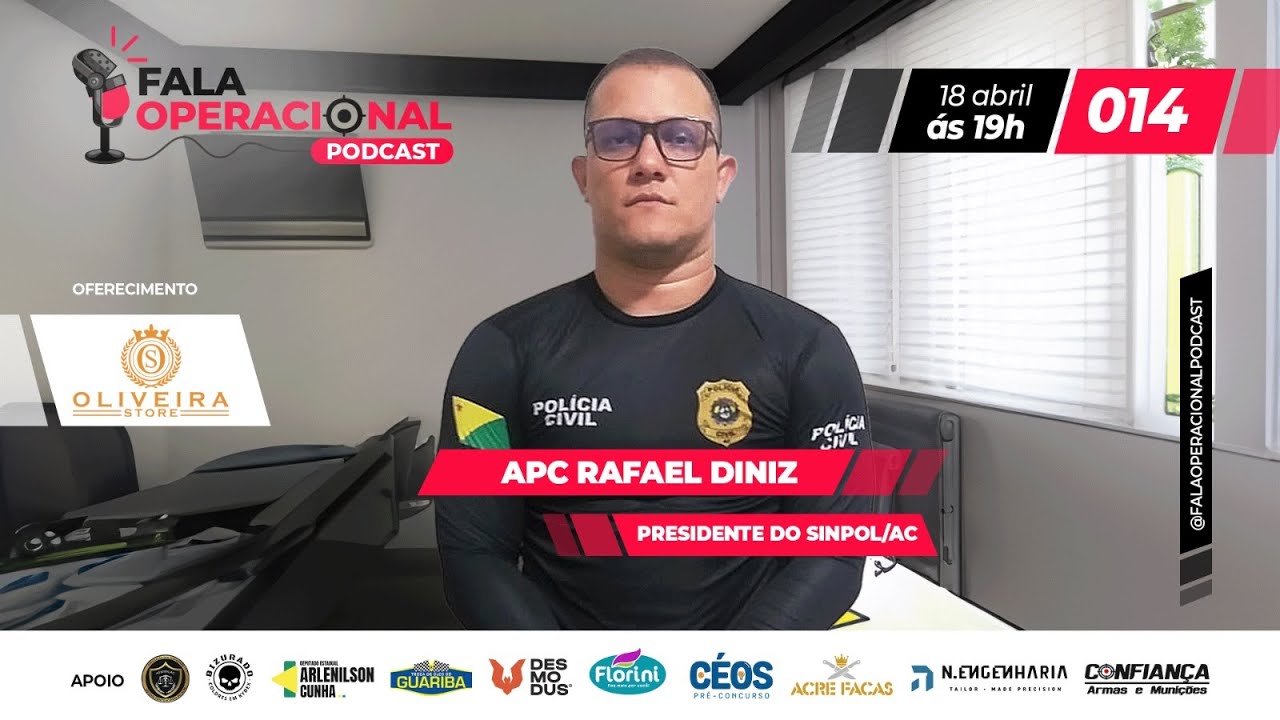 Sejam bem-vindos ao 14º episódio do podcast Fala Operacional, um programa espetacular que vai impactar sua vida com histórias entusiasmantes de nossos operadores de Segurança Pública. De forma leve e descontraída, nesta quinta-feira, nos estúdios da Sans Filmes, o escrivão de polícia Rafael Diniz compartilhou com os apresentadores Kiuly Daniel e Duda Vasconcelos sua admirável história profissional e pessoal.