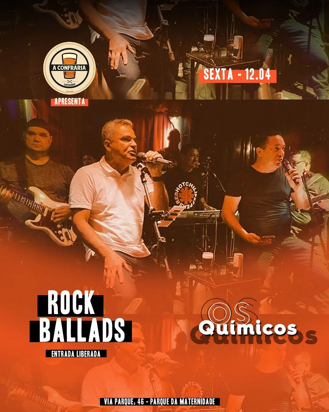 Na sexta-feira (12), tem a banda Químicos na Confraria. No set, os clássicos do pop&rock mundial. Será a partir das 18h e com entrada gratuita.