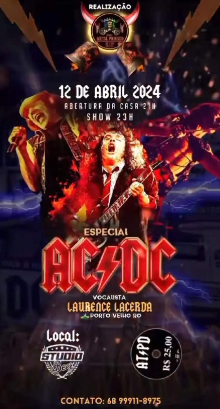 A banda AC/DC retorna aos palcos em 2024 após 7 anos sem turnês e para homenageá-la teremos o “Especial AC/DC”, nesta sexta-feira, (12), comandado pelo vocalista Law Lacerda de Porto Velho. Com sucessos das fases Bon Scott e Brian Johnson. Vendas e informações: (68) 99911-8975.