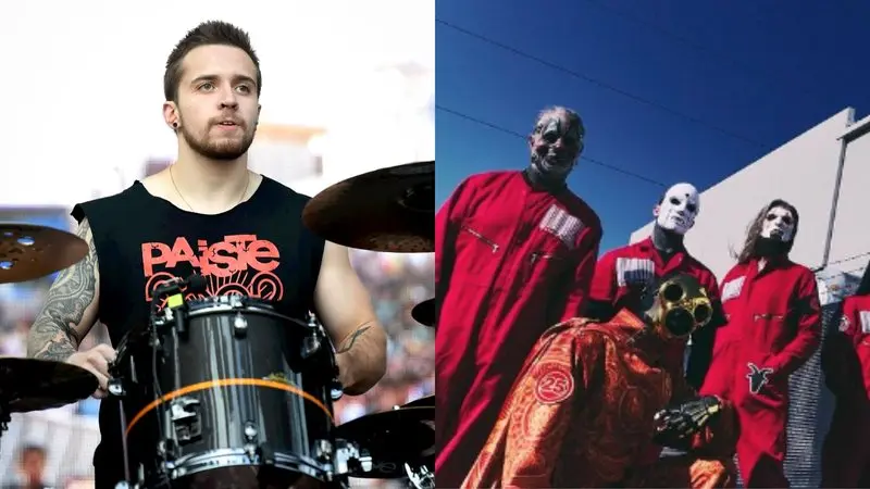 Eloy Casagrande (Foto: Ethan Miller/Getty Images) e Slipknot com o baterista na formação (Foto: Reprodução/Instagram)