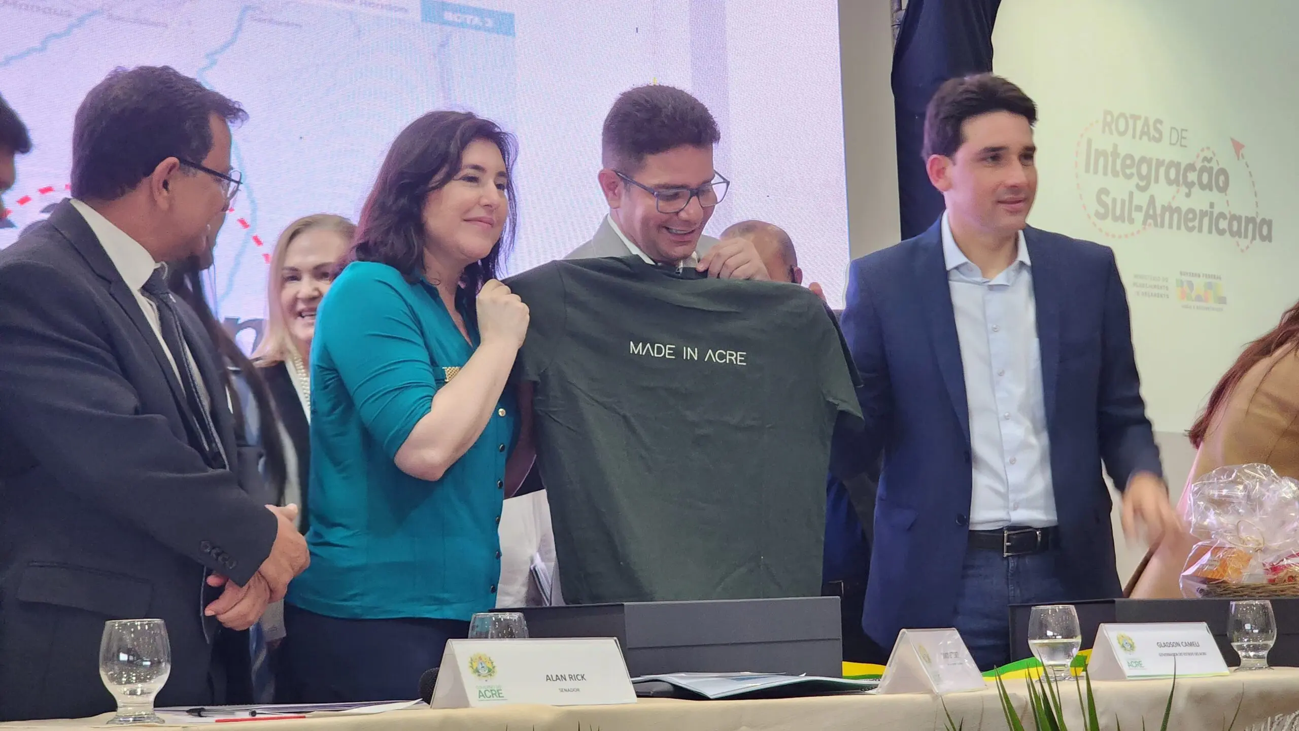 A ministra do Planejamento, acompanhada do ministro de Portos e Aeroportos, Silvio Filho, participou do evento “Rotas de Integração Sul-Americana”, no qual foram apresentadas as principais rotas de exportação que ligaram o Acre a outros estados brasileiros e também a outros países da América do Sul e de todo o mundo, trazendo desenvolvimento econômico para região.