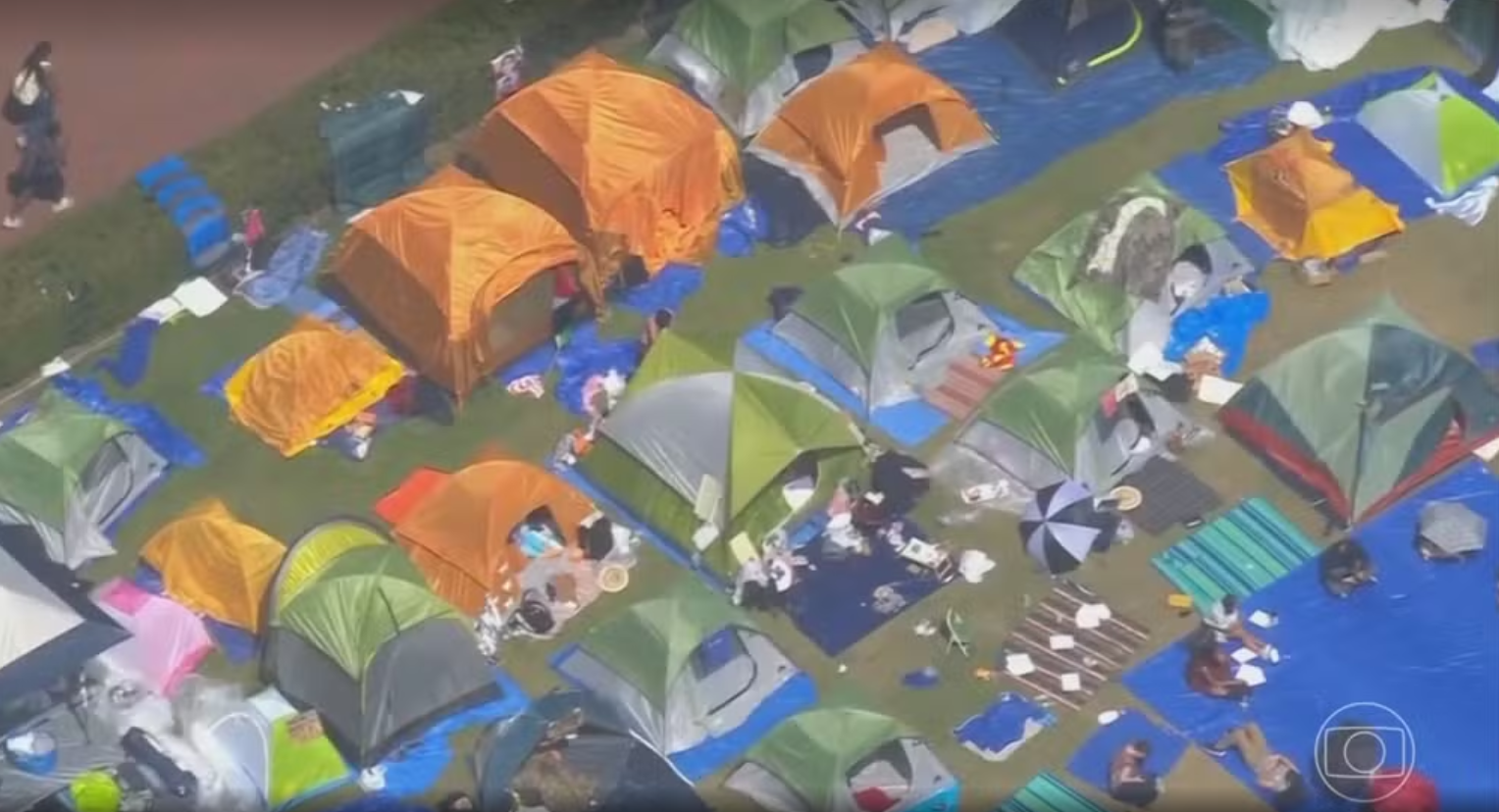 Do lado oposto, o grupo de estudantes pró-Israel também ficou. Eles vêm denunciando casos de discriminação contra a comunidade judaica durante os protestos. Um aluno afirmou que o campus também pertence aos judeus e ele não vai ser intimidado.