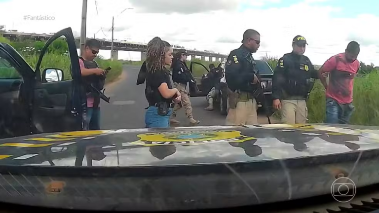 As imagens mostram agentes da Polícia Rodoviária Federal (PRF) abordando um carro preto, onde o motorista é o primeiro a sair, imediatamente colocando as mãos na cabeça. O passageiro, identificado como Deibson Cabral Nascimento, de 34 anos, conhecido como “Tatu”, estava atrás.