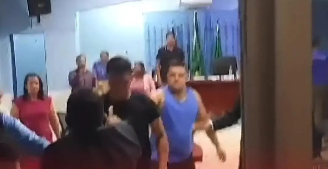 Na gravação, é possível ver o momento em que um dos envolvidos joga uma cadeira em outro. Conforme reportado pelo Notícias do Juruá, o vereador Edir do Zé Liel protagonizou a confusão com os vereadores Albecir e Elton, nas dependências do Legislativo Municipal de Ipixuna.