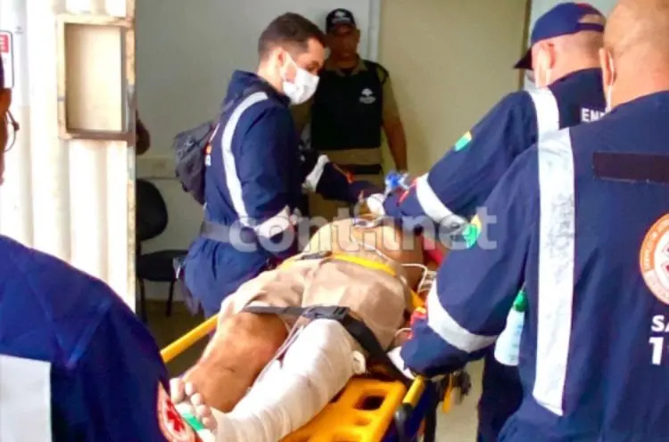 O médico plantonista do Samu, Dr. Toniel Souza, explicou que o paciente sofreu um traumatismo craniano encefálico de natureza grave, precisando ser entubado ainda no local, e uma fratura de tíbia da perna esquerda. Ele foi entregue ao setor de traumatologia do PS, onde passará por novas avaliações.