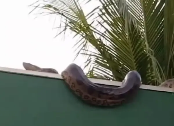 Moradores da comunidade Bonsucesso, em Várzea Grande (MT), tomaram um susto na manhã de domingo (7/4) ao se depararem com uma sucuri gigante, de cerca de 3 metros, no muro de uma casa da Avenida Gio João da Silva. Apesar do susto, nenhuma pessoa ficou ferida.