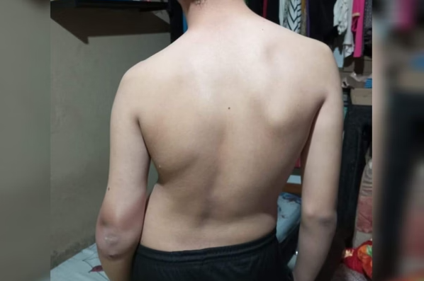 Imagens mostram o menino Carlos Teixeira, de 13 anos, sofrendo agressões dentro da escola e chorando de dor em casa. Ele morreu na última terça-feira (16/4) depois que dois estudantes pularam em suas costas, conforme relato do pai da vítima, Julysses Fleming.