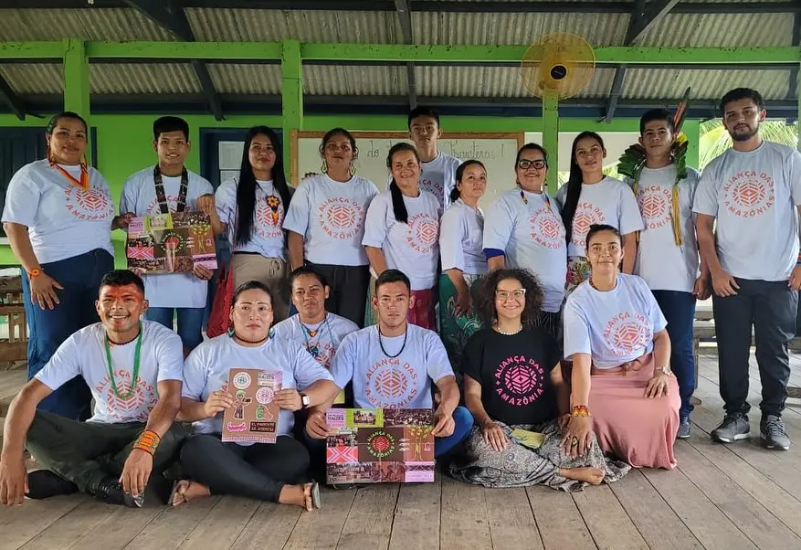 Alguns jovens presentes na formação do podcast e da rede de comunicadores/Foto: Rede de Comunicadores Indígenas