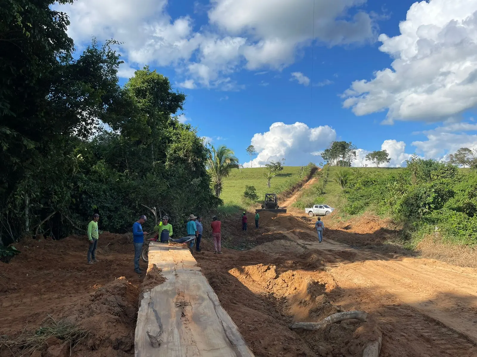 Na manhã desta quinta-feira, 23, o gerente de campo – Francisco Lima, esteve acompanhando de perto os trabalhos de construção de 10 pontes no ramal do km 75 (Aurora), garantindo melhor trafegabilidade aos produtores rurais.