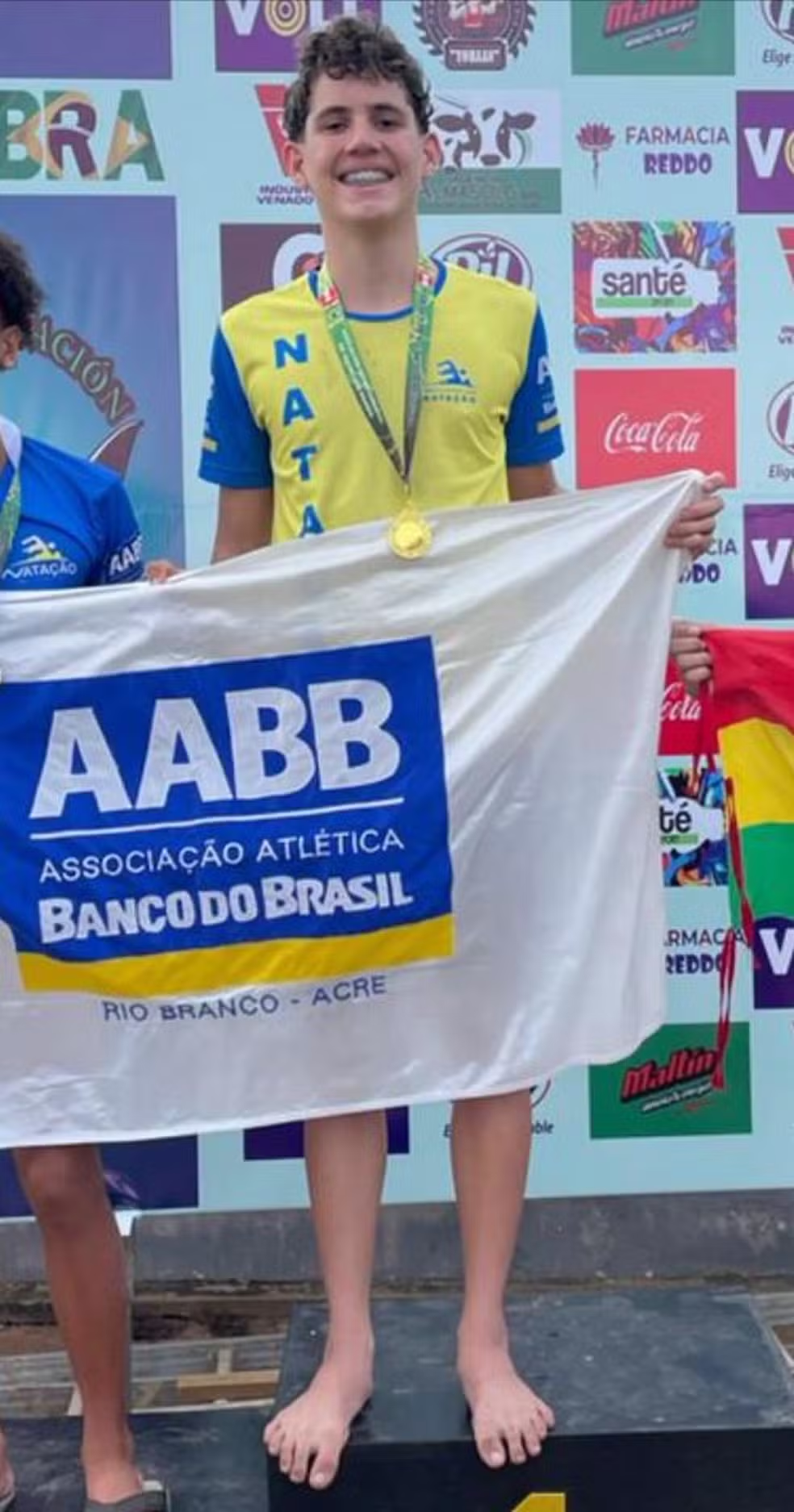 Luiz Antônio Jerônimo e Thales Moretti, de 13 e 14 anos, respectivamente, estão indo rumo a Salvador, na Bahia, para competir no Campeonato Brasileiro Interclubes Infantil de Natação de Inverno – Troféu Ruben Dinard, representando a Associação Atlética Banco do Brasil (AABB) de Rio Branco.
