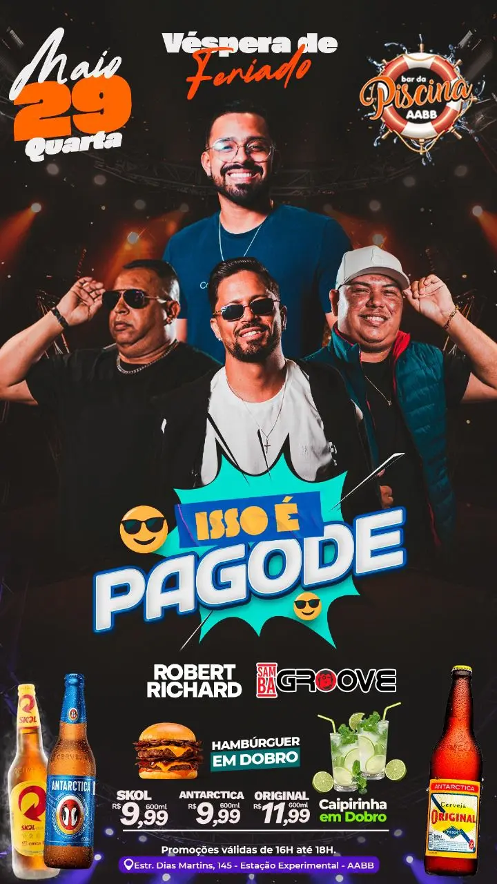 Confira a programação do Bar da Piscina do dia 29, 30 e 31.