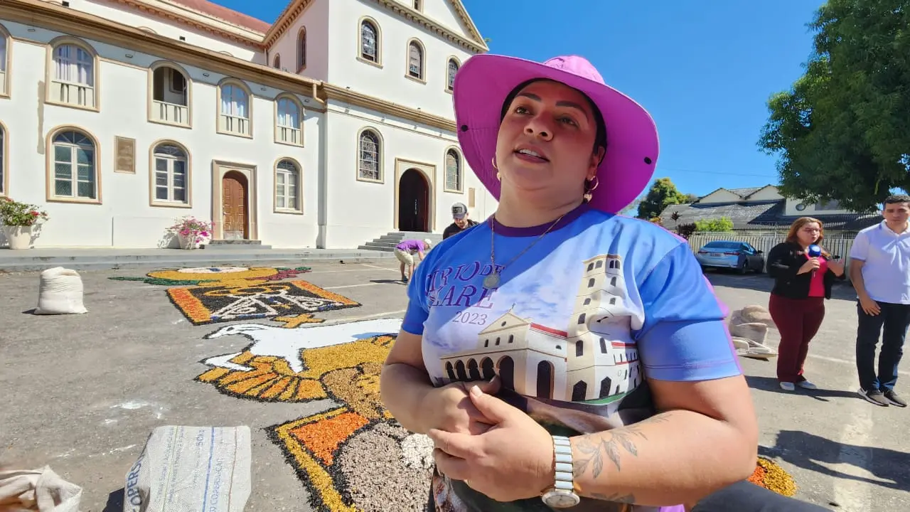 Andréia Lopes também já está há algum tempo atuando na confecção dos tapetes, mais precisamente, desde 2016. Ela destaca a celebração de Corpus Christi como um momento único de devoção.