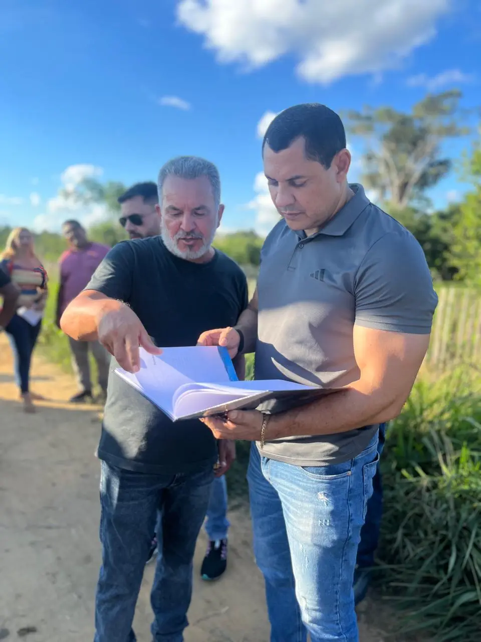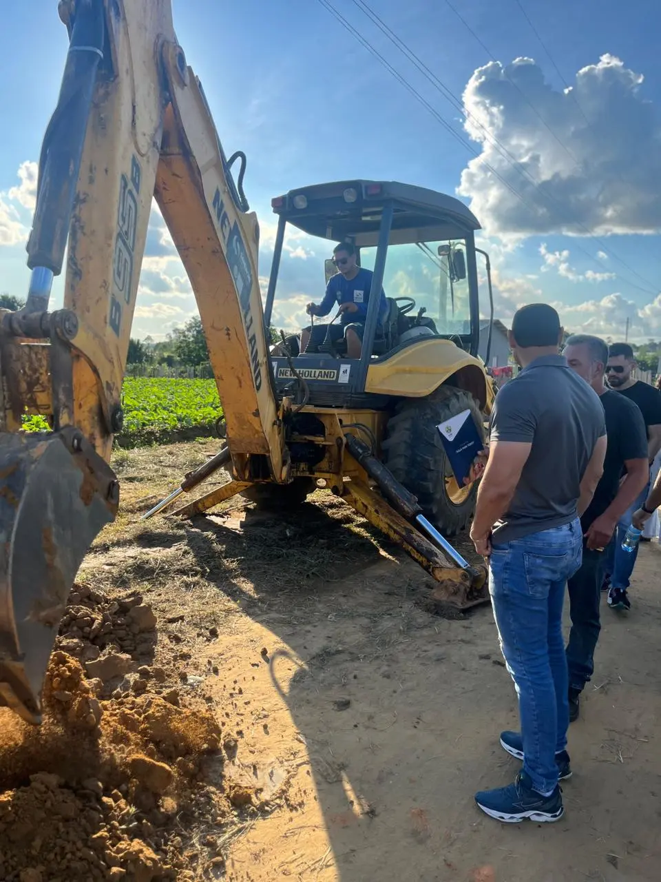 Na companha do diretor Braz, do Serviço de Águas e Esgotos do Estado do Acre (Saneacre), o deputado Coronel Ulysses visitou as obras de ampliação da rede de água e esgotos na zona rural de Cruzeiro do Sul.