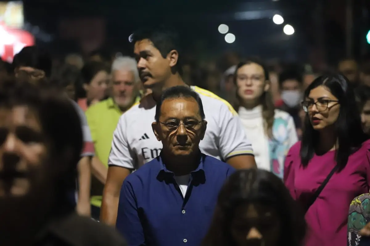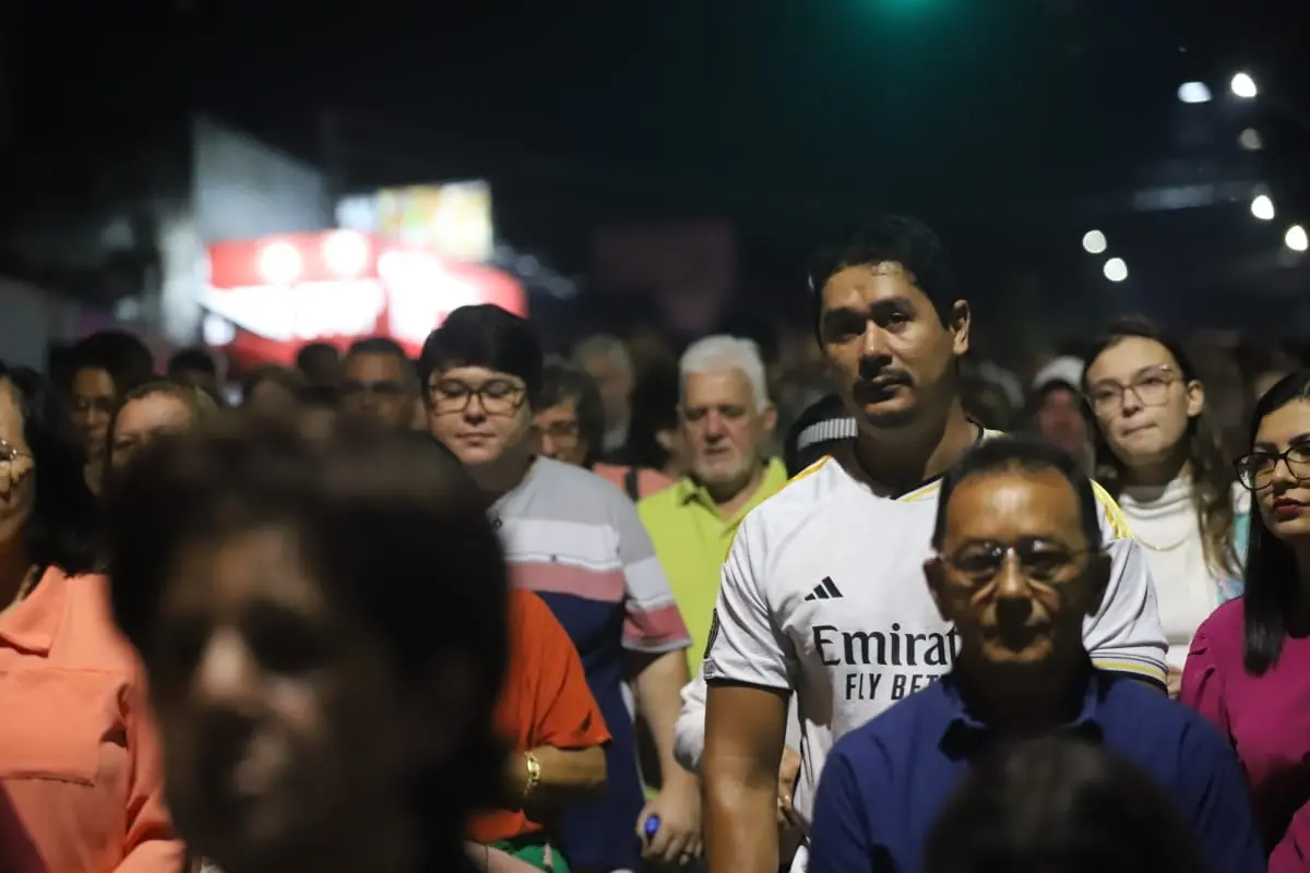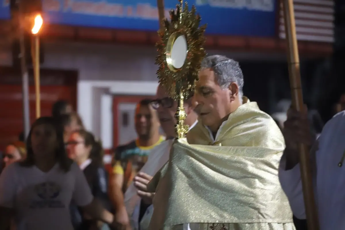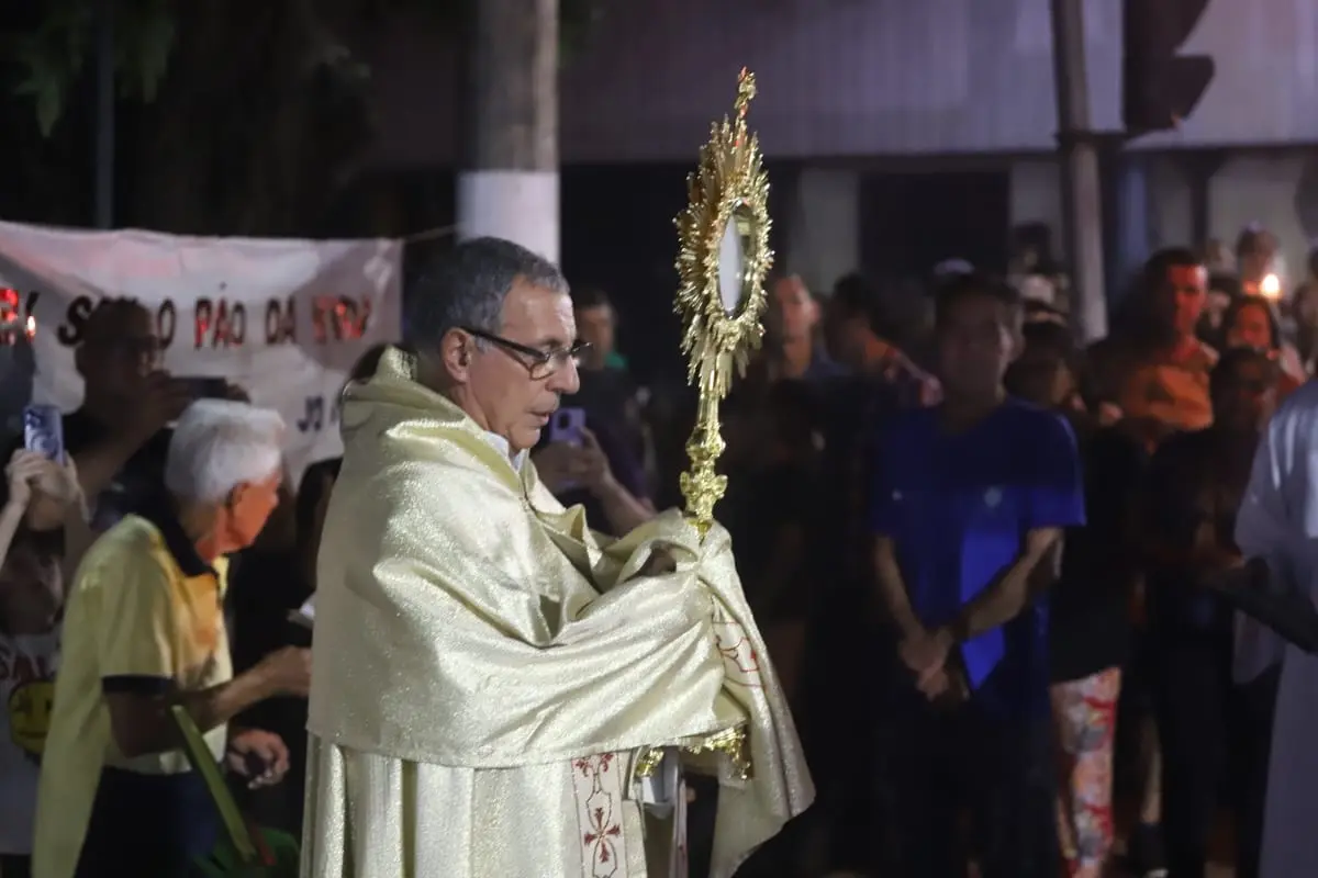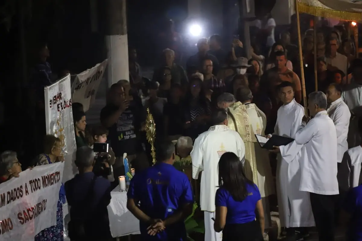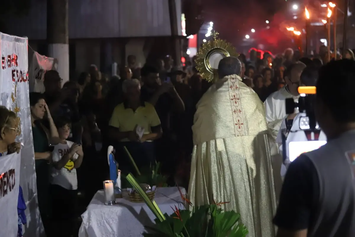 Os mais de 600 fiéis acompanham a procissão de Corpus Christi pelas ruas de Rio Branco na noite desta quinta-feira (30). Com saída da Catedral Nossa Senhora de Nazaré, os católicos seguem em oração e reflexão pelo Centro da capital.